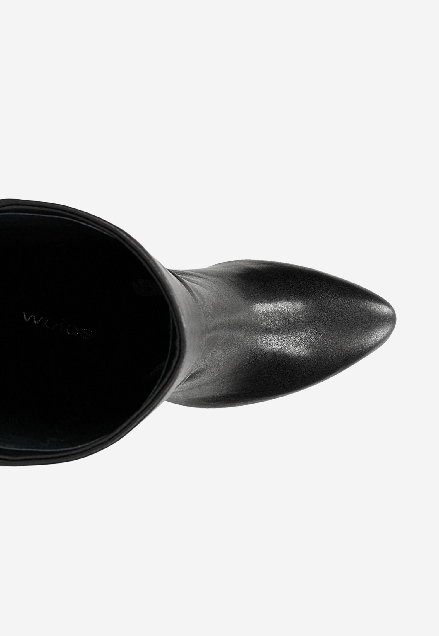 Brązowe wysokie botki damskie na szpilce 55328-62 Czarne skórzane botki na szpilce 55328-51