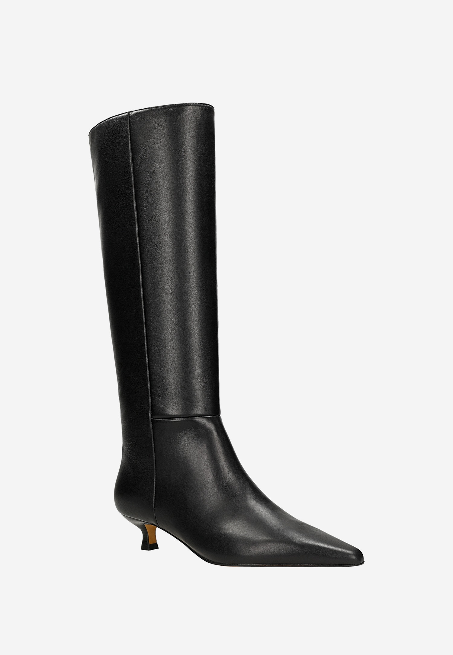 Czarne skórzane kozaki damskie na niskim obcasie 71119-51 Widok 1