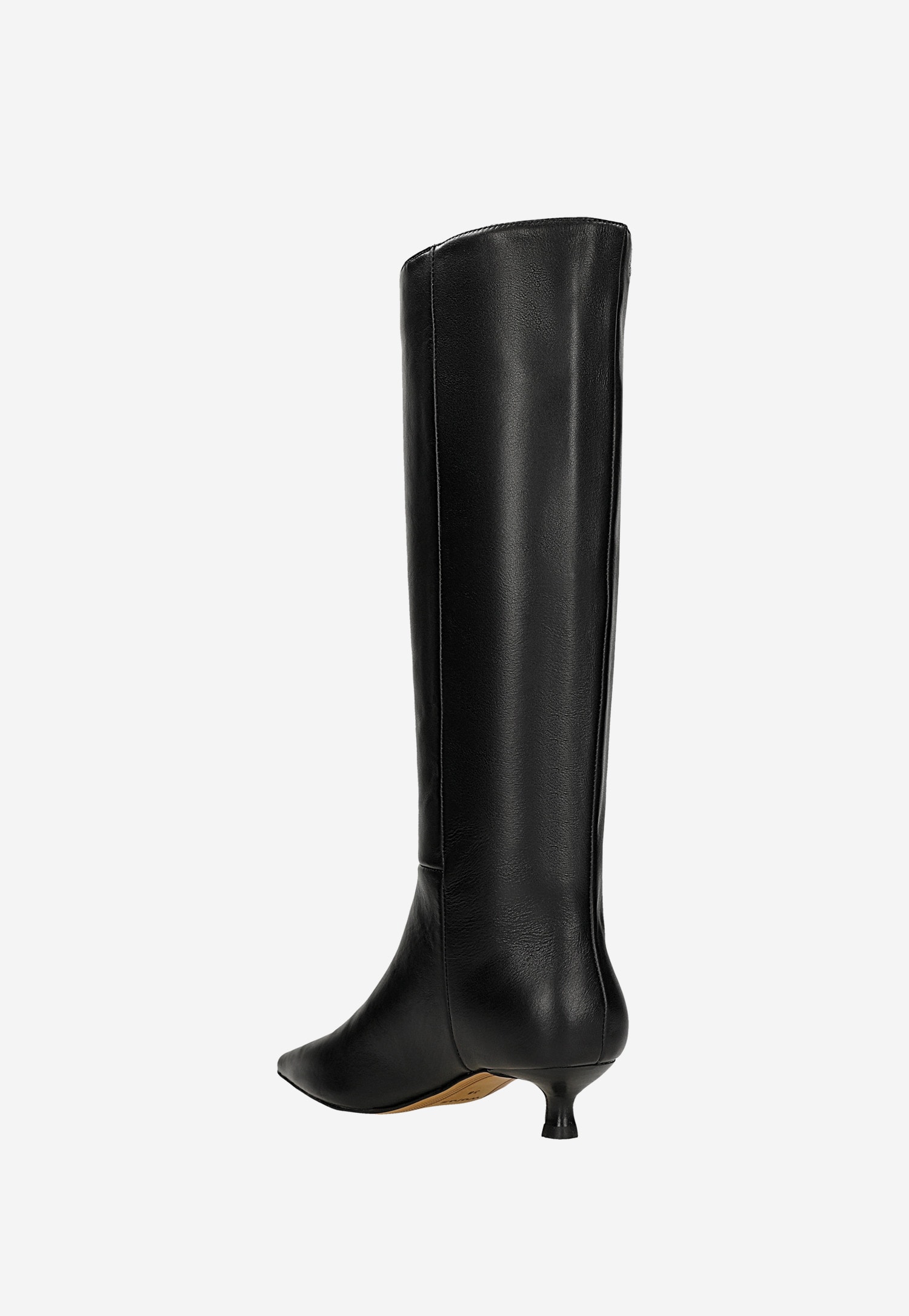 Czarne skórzane kozaki damskie na niskim obcasie 71119-51