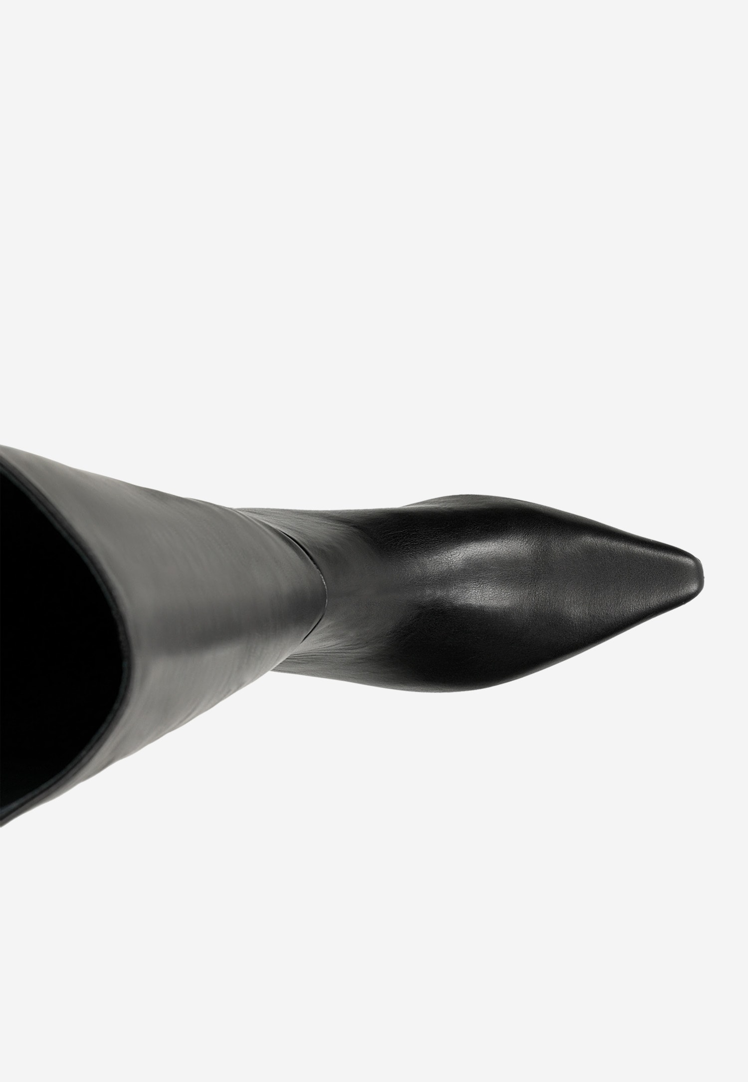 Czarne skórzane kozaki damskie na niskim obcasie 71119-51 Widok 4