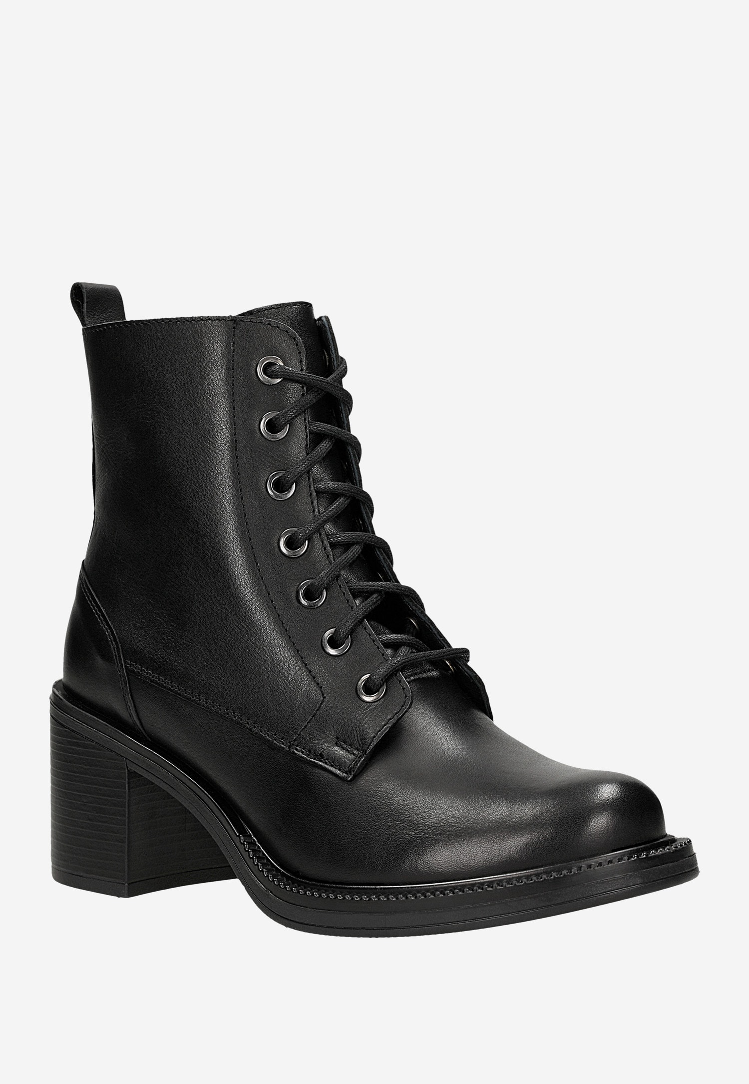 Czarne skórzane trzewiki damskie na obcasie 64140-51