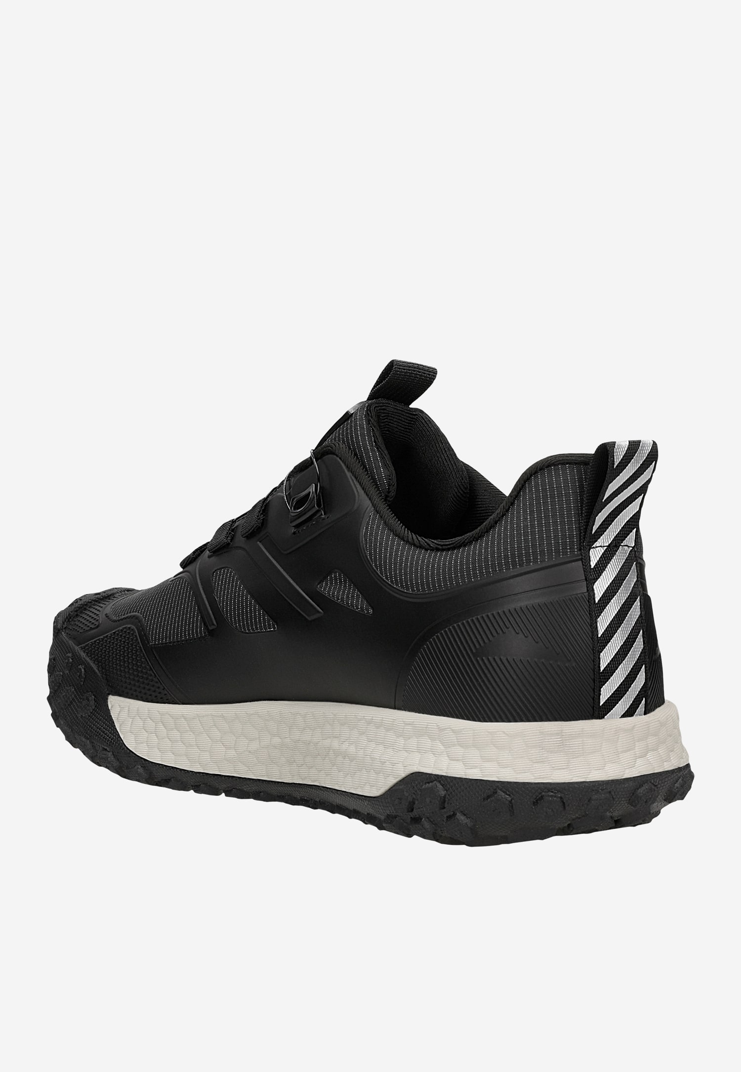 Nowoczesne czarne sneakersy ze sznurowaniem na pokrętło to propozycja dla kobiet ceniących zarówno komfort, jak i praktyczne rozwiązania. Innowacyjny system zapinania pozwala na błyskawiczne dopasowanie obuwia do stopy – wystarczy jedno przekręcenie, by cieszyć się idealnym dopasowaniem przez cały dzień.