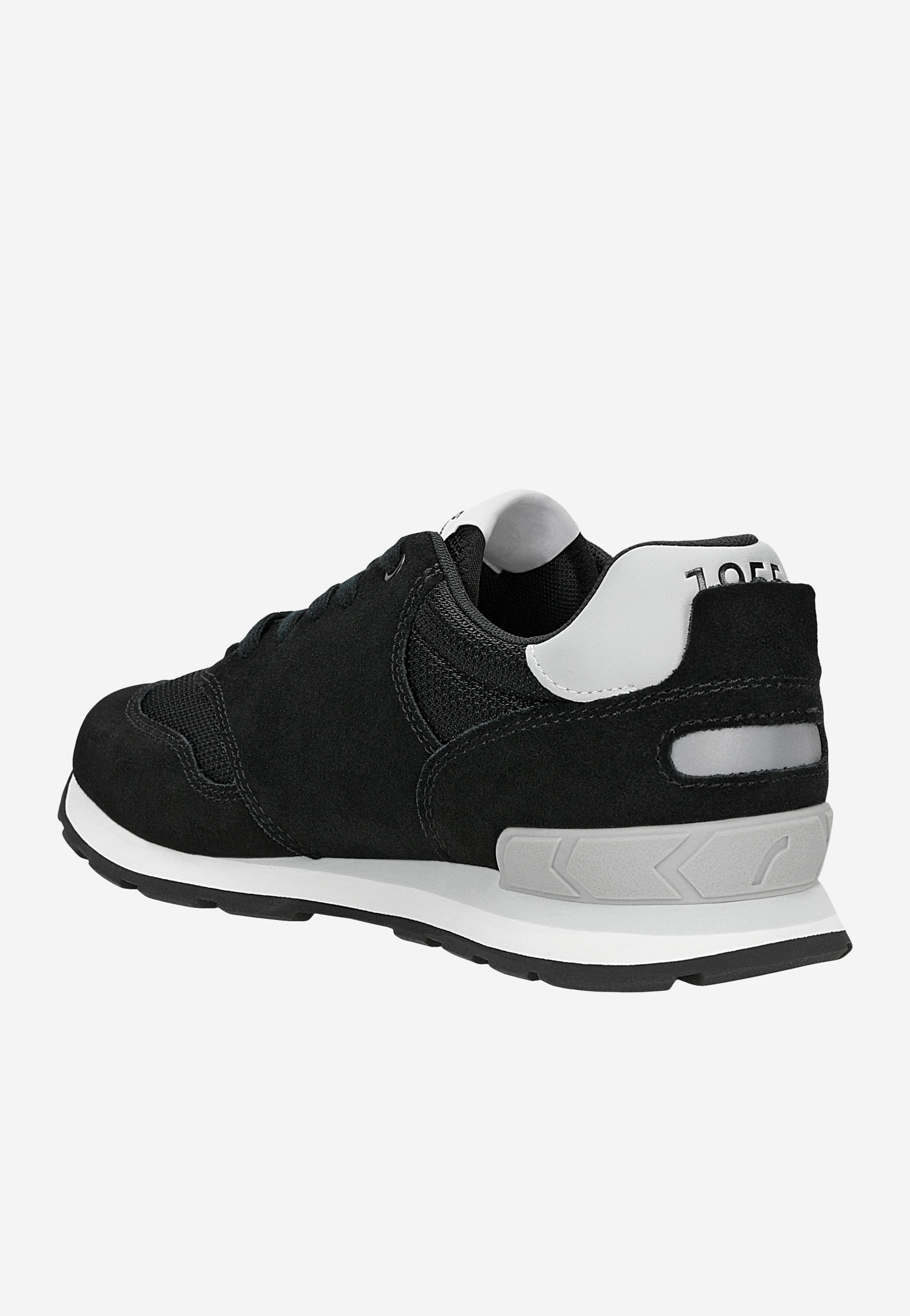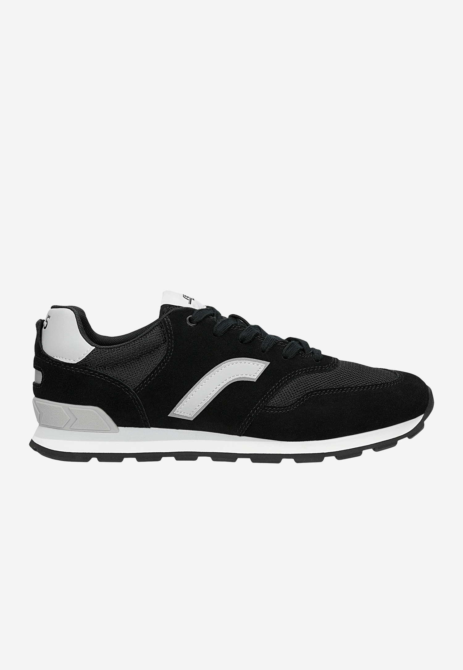• Czarne sportowe sneakersy wykonane są z dwoiny welurowej oraz materiału tekstylnego.