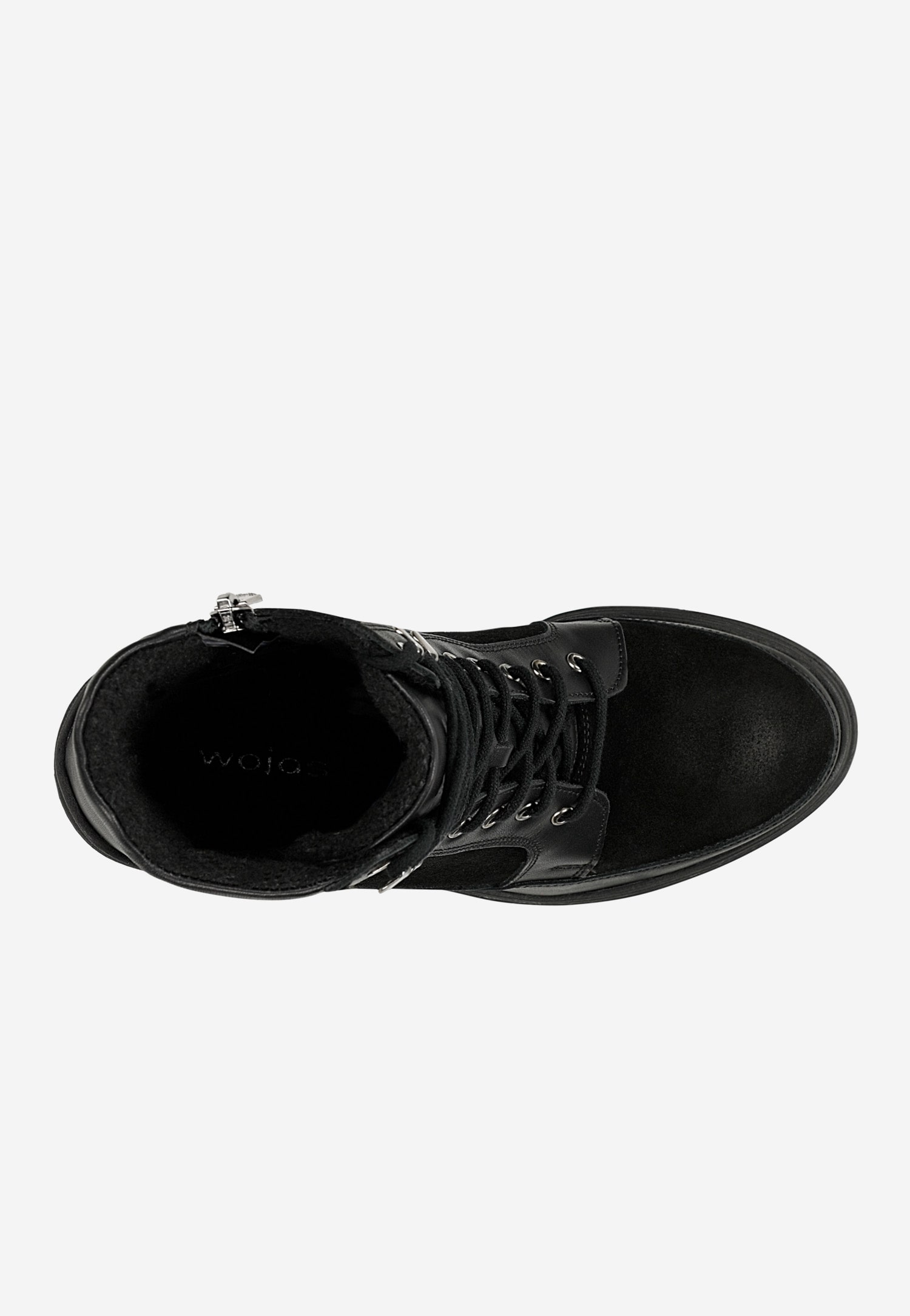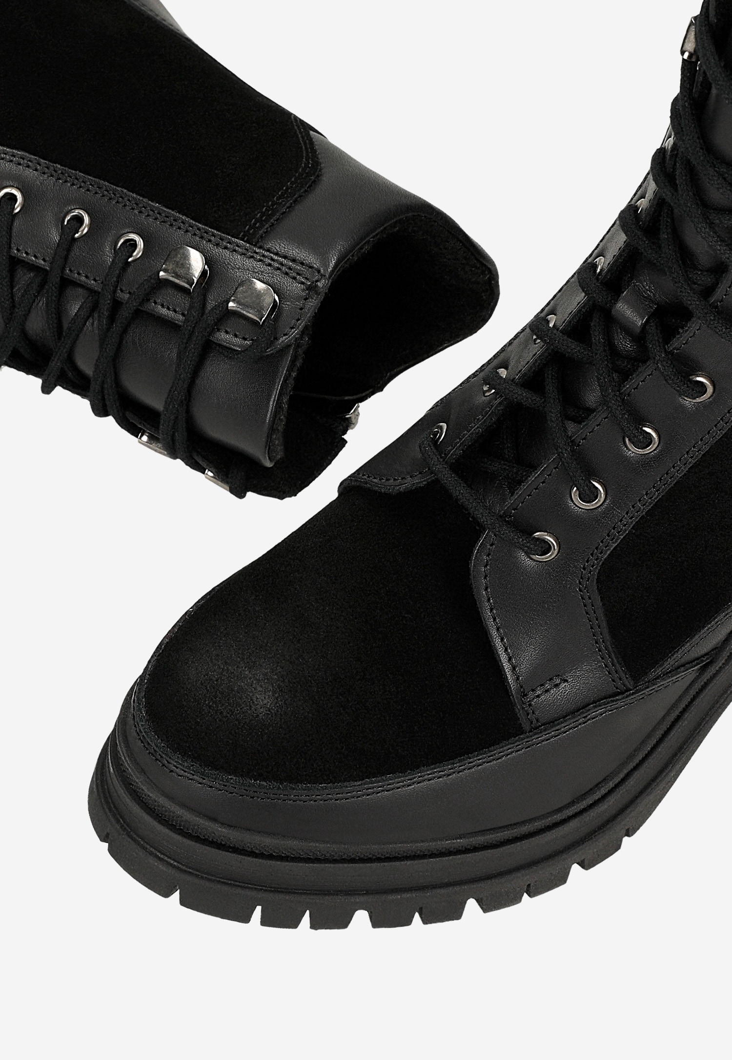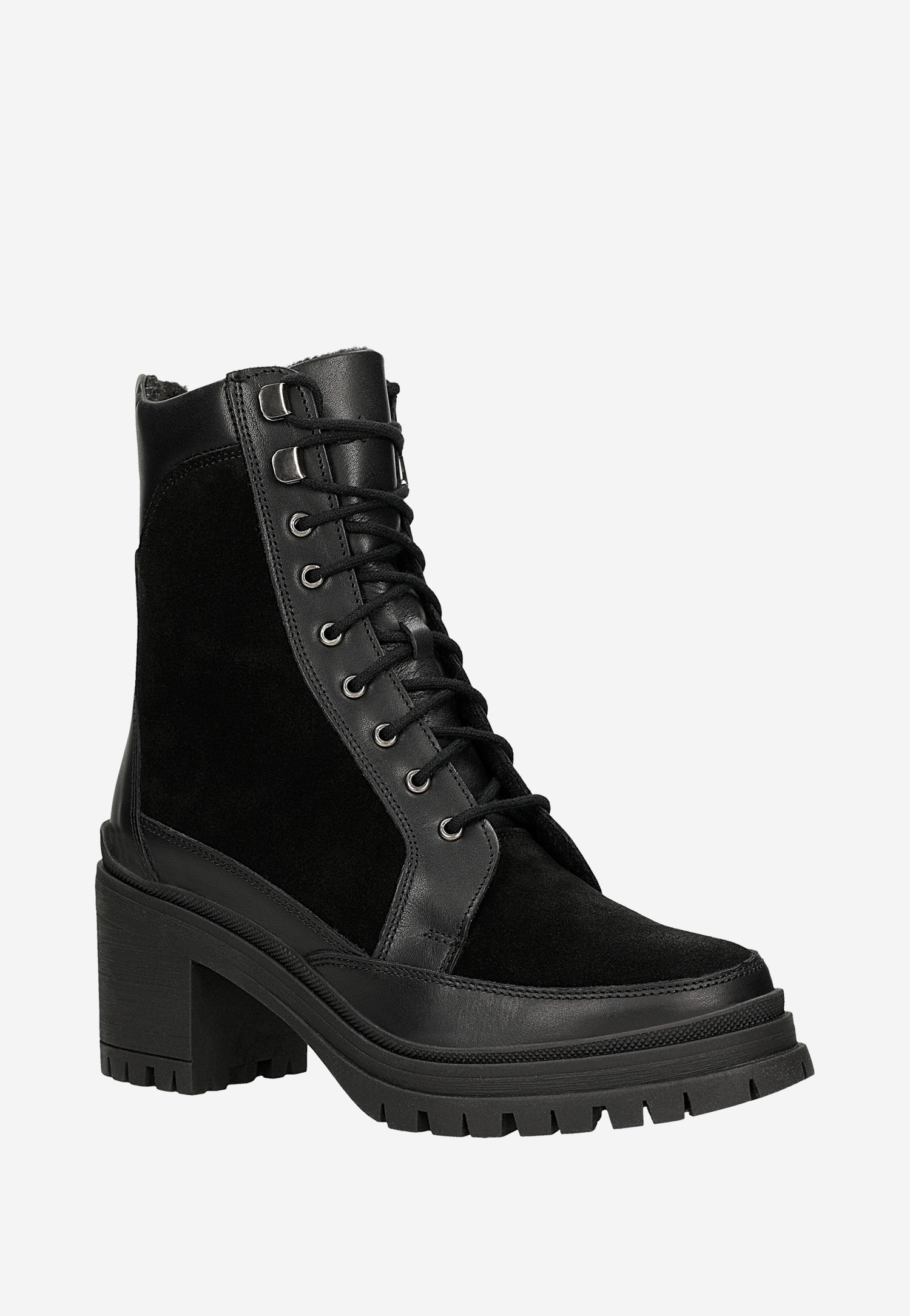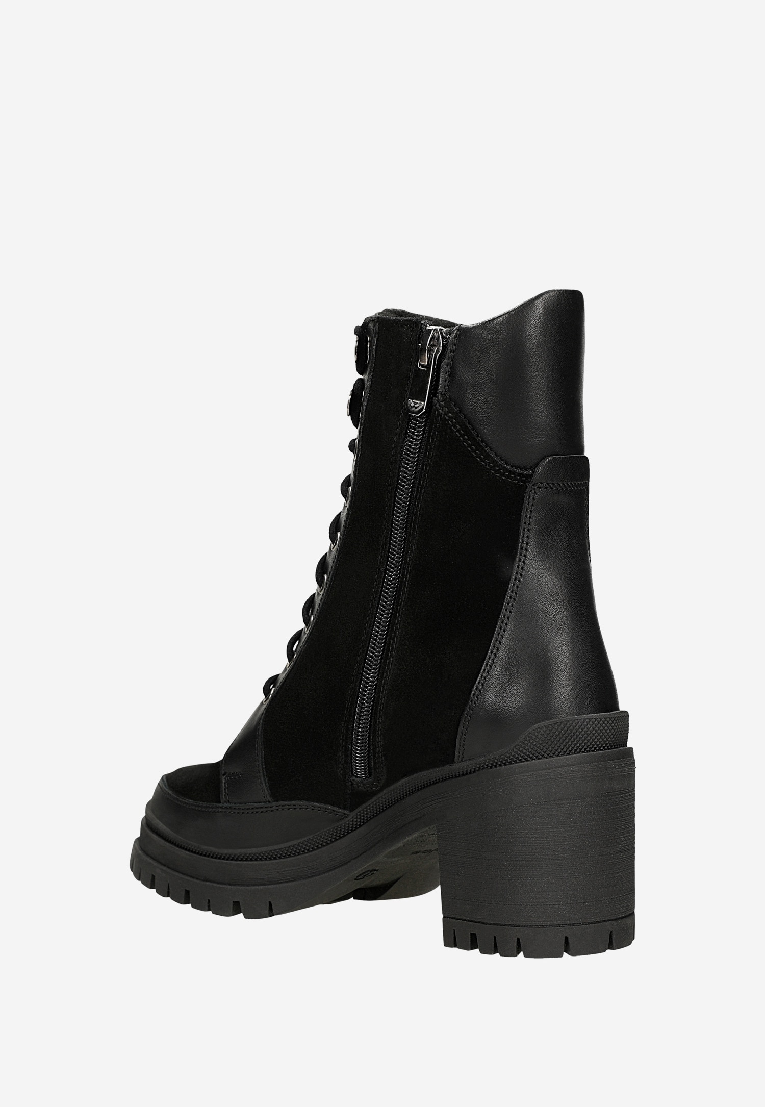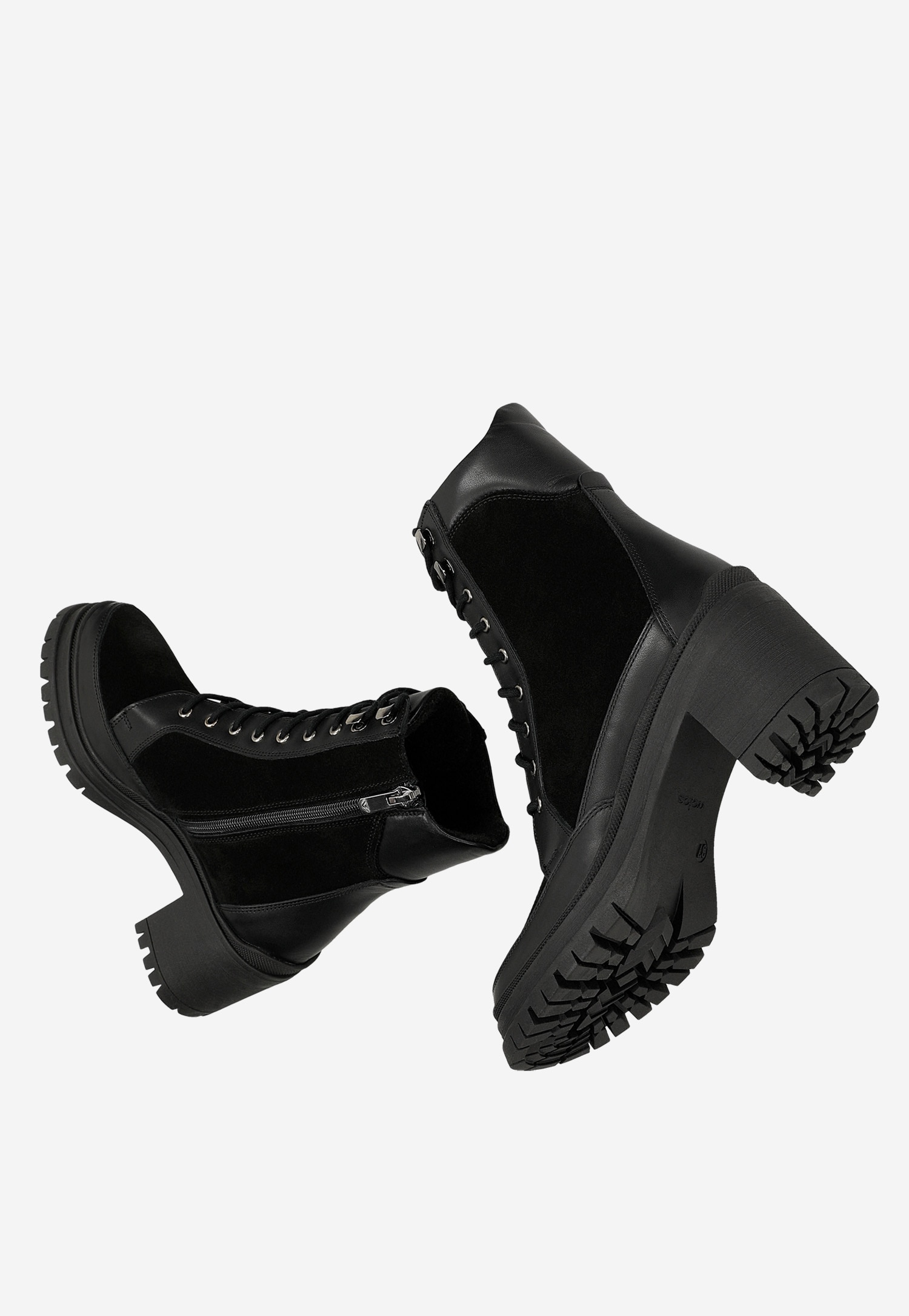 Czarne trzewiki damskie na obcasie z łączonych skór 64156-71
