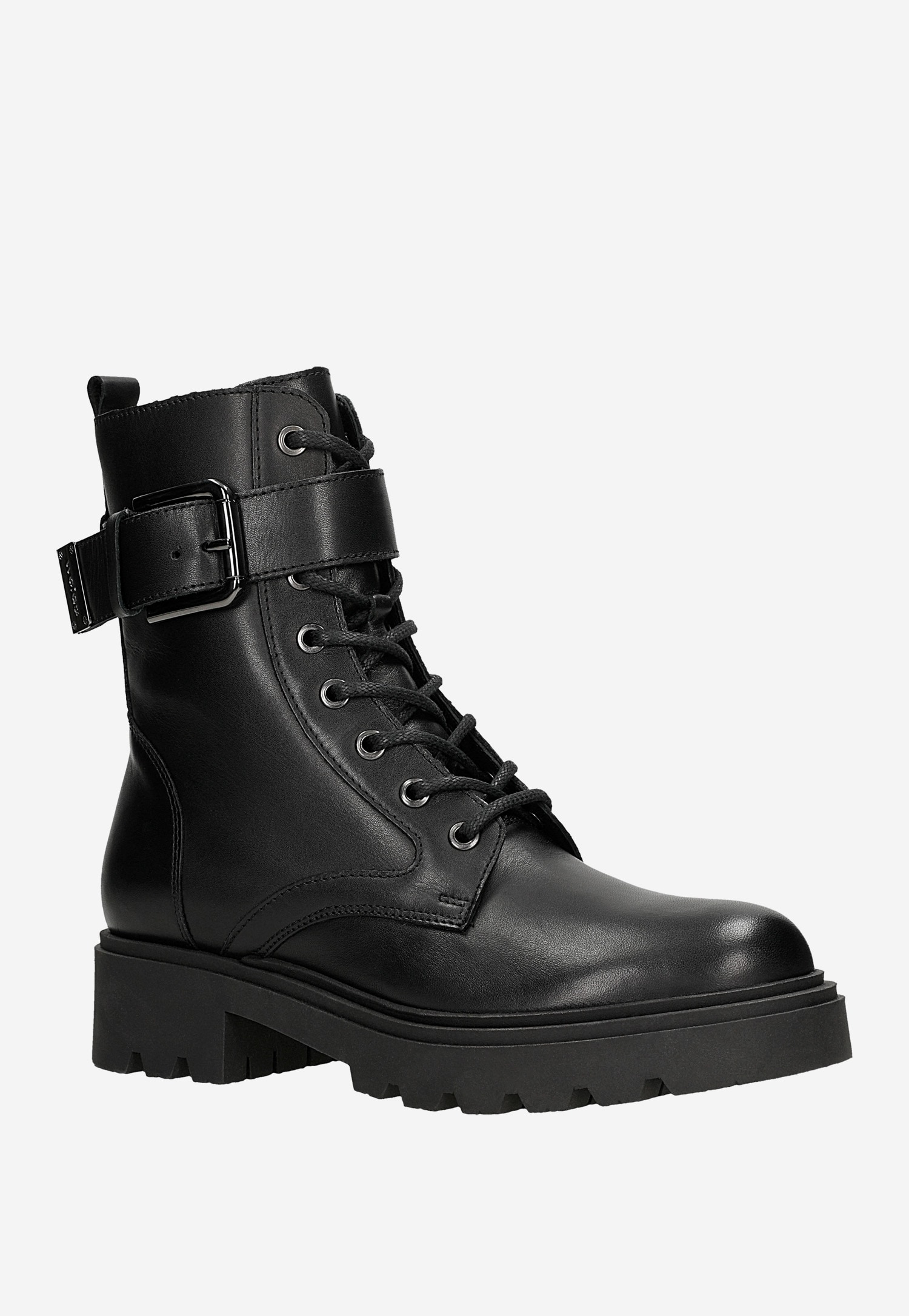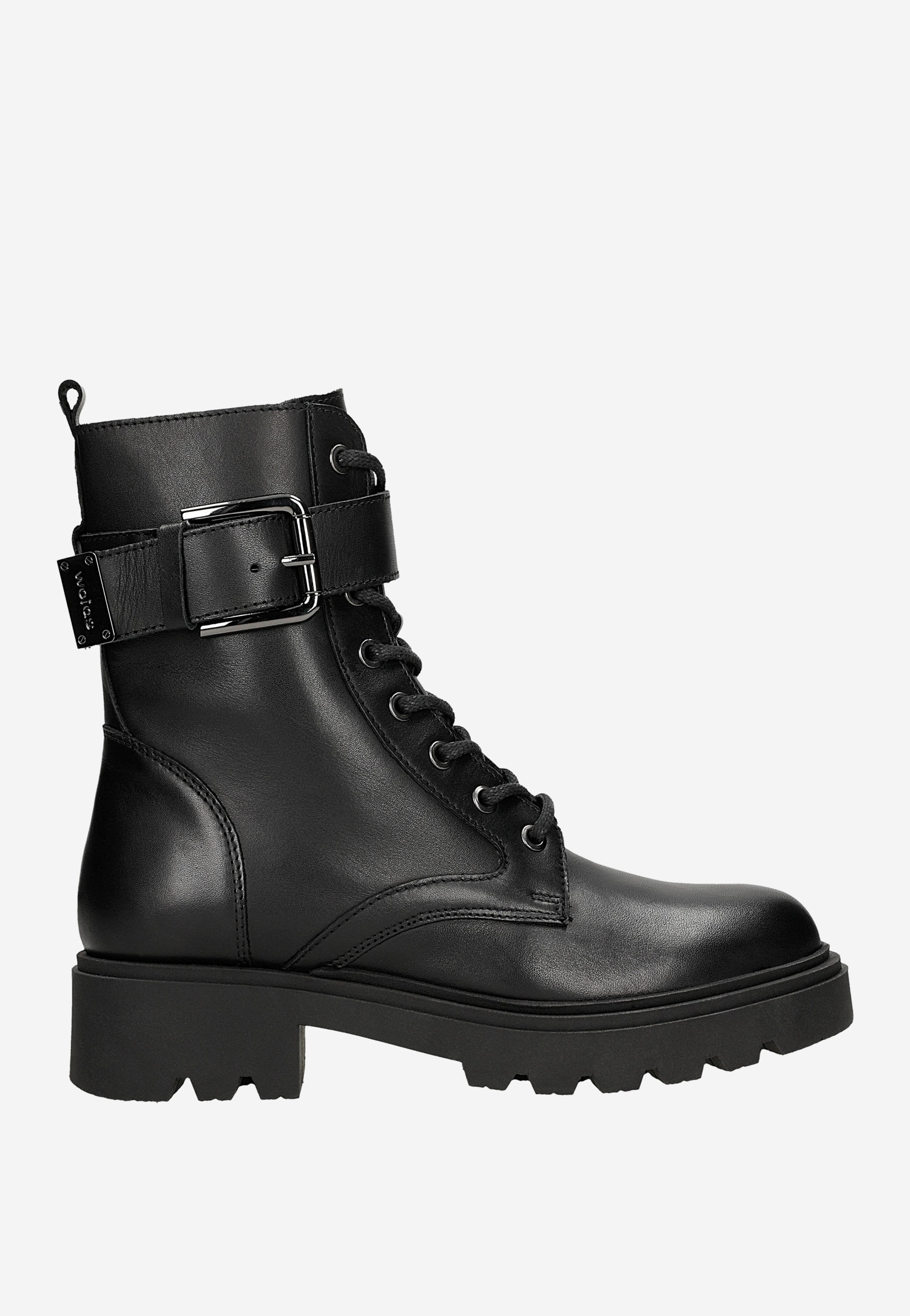 Czarne trzewiki damskie ze skóry licowej 64137-51