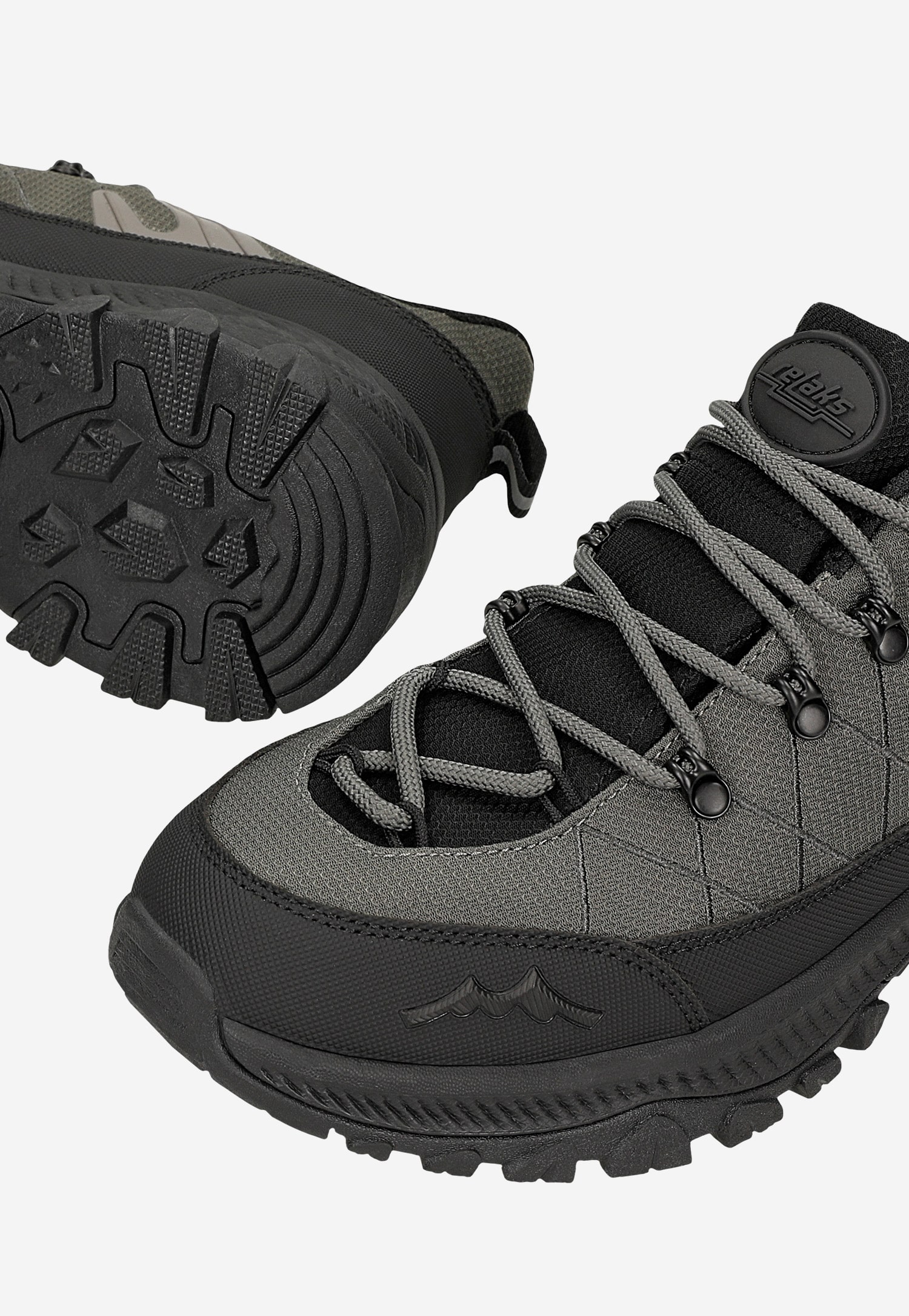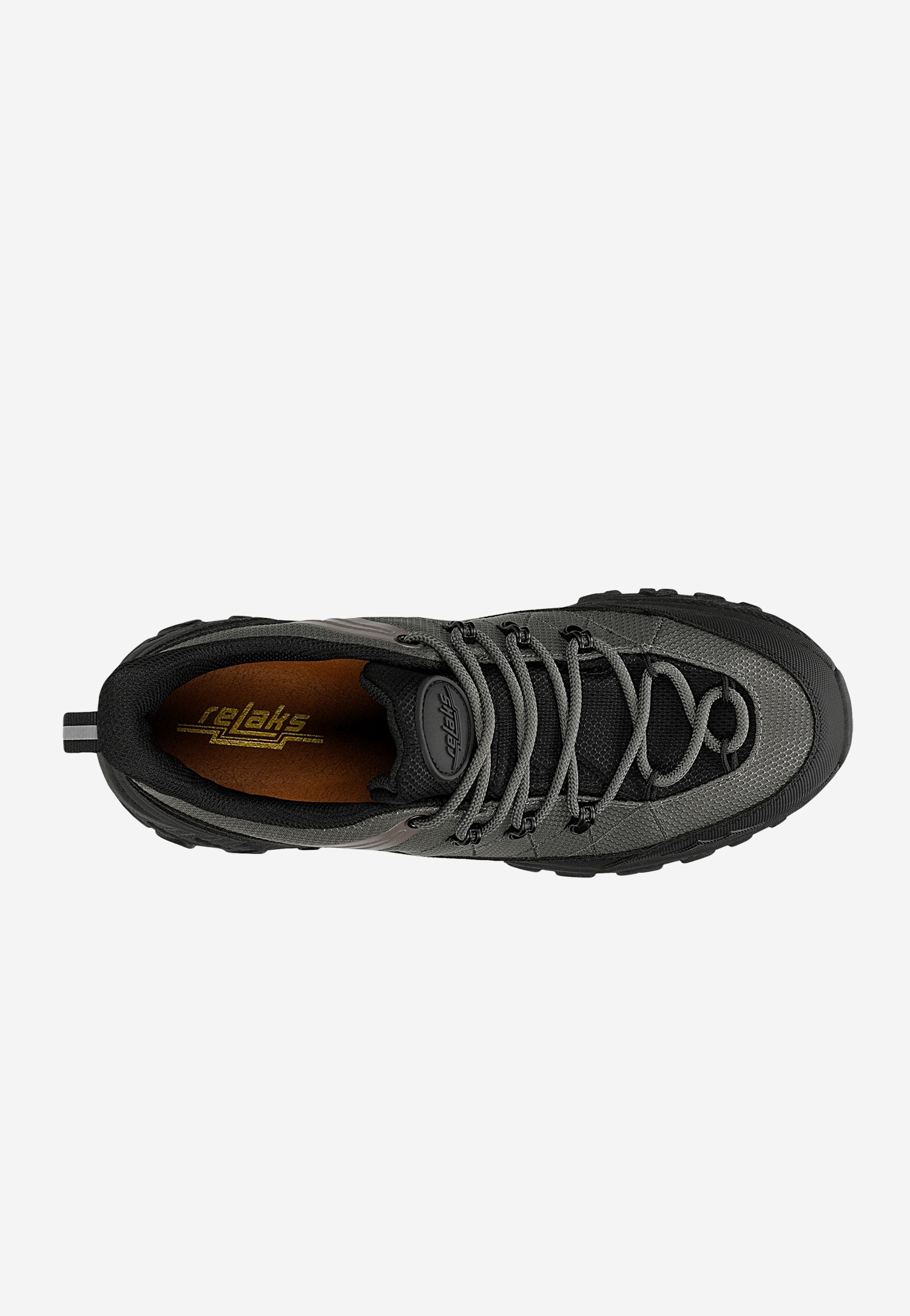 Beżowo czarne półbuty trekkingowe damskie RELAKS R34204-44 Czarne niskie trekkingi RELAKS R34204-41 Czarno-popielate trekkingi RELAKS z membraną nano-TEX™ R34204-40 Zielono-czarne niskie trekkingi męskie RELAKS R34204-47