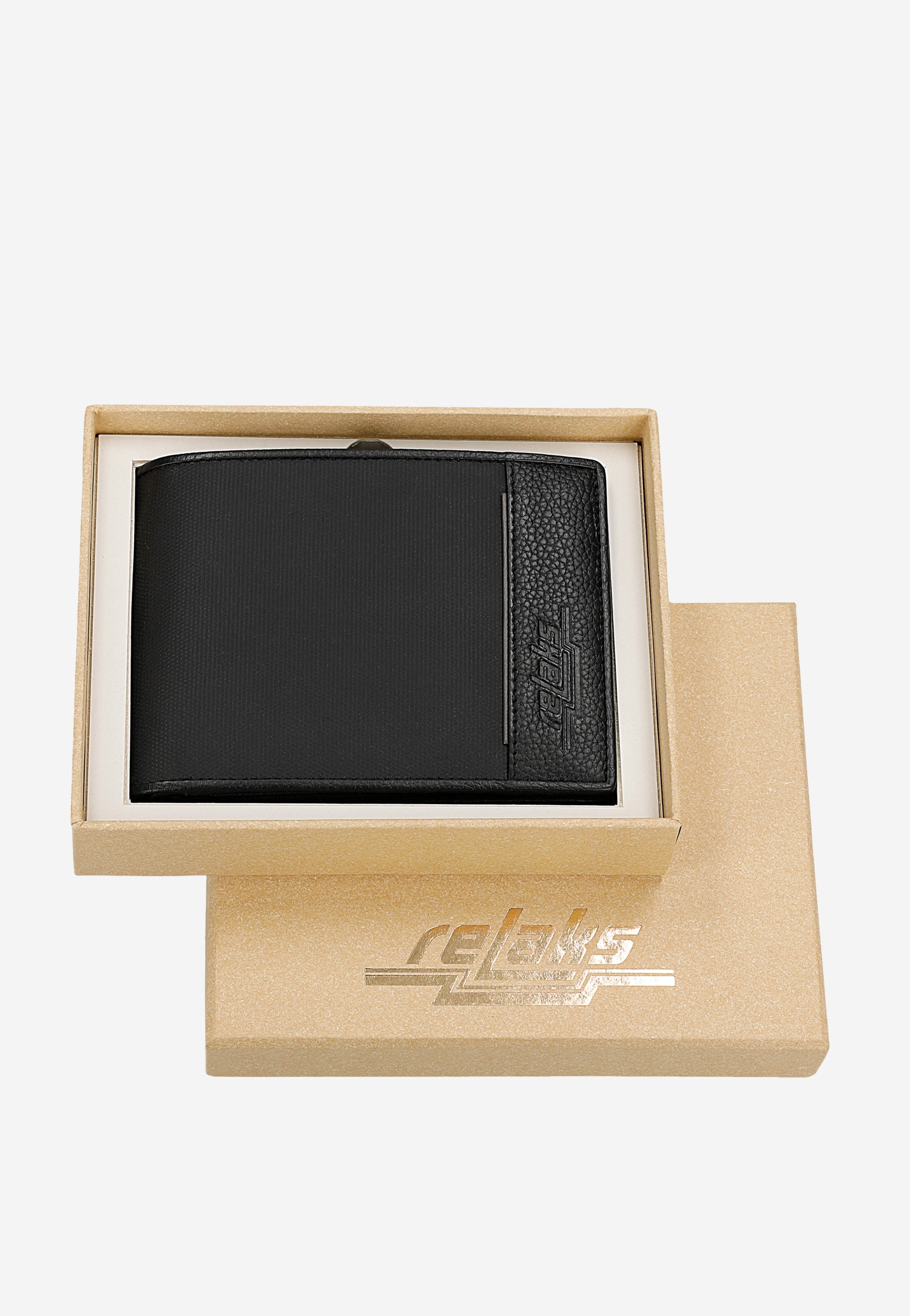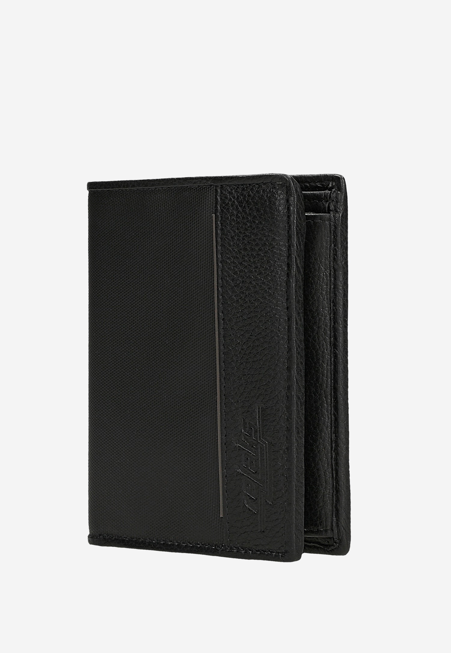 Czarny portfel RELAKS ze skórzanymi wstawkami R91004-51