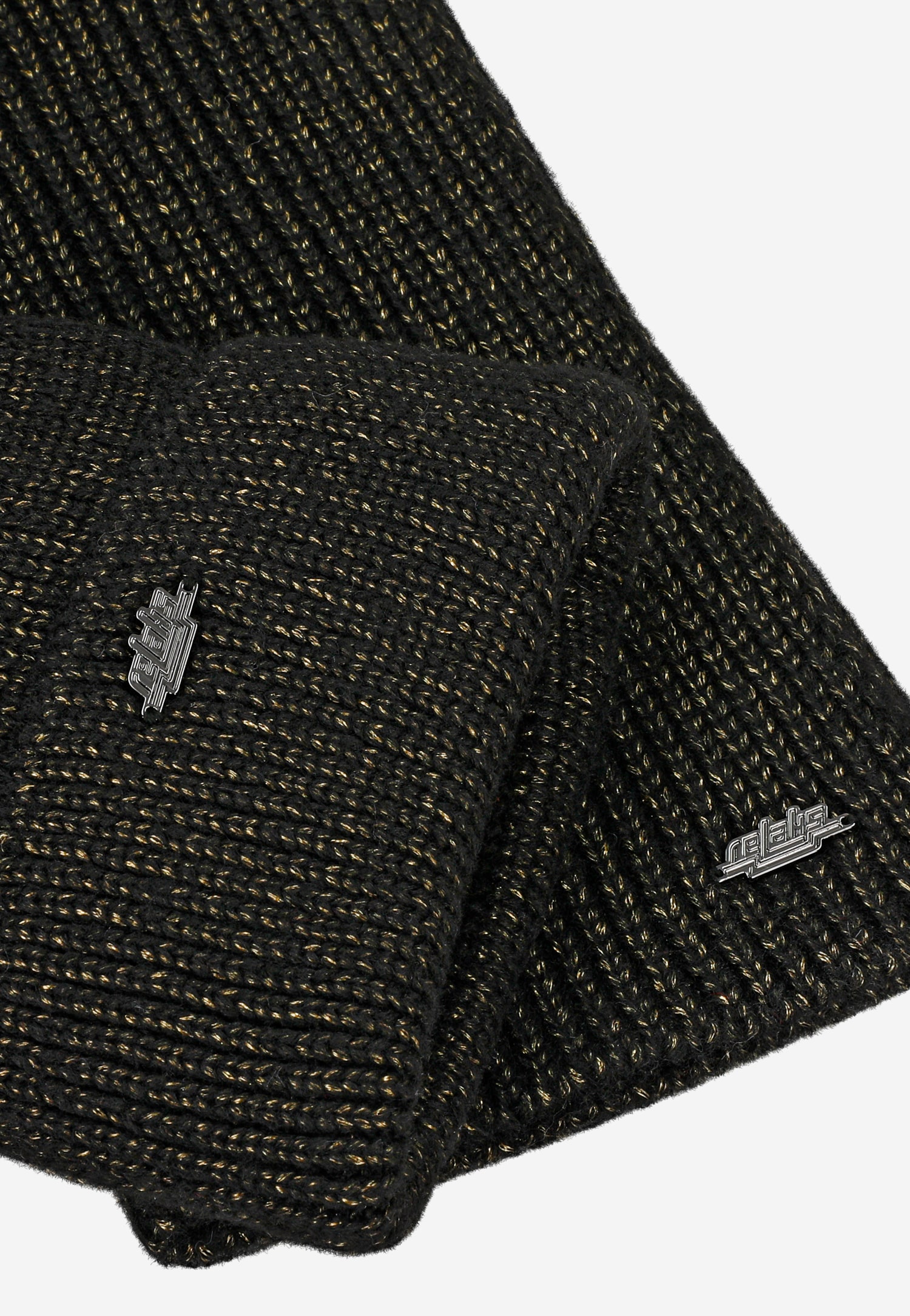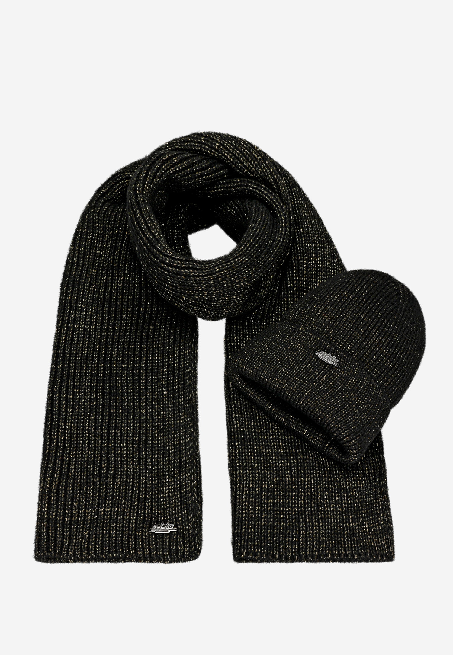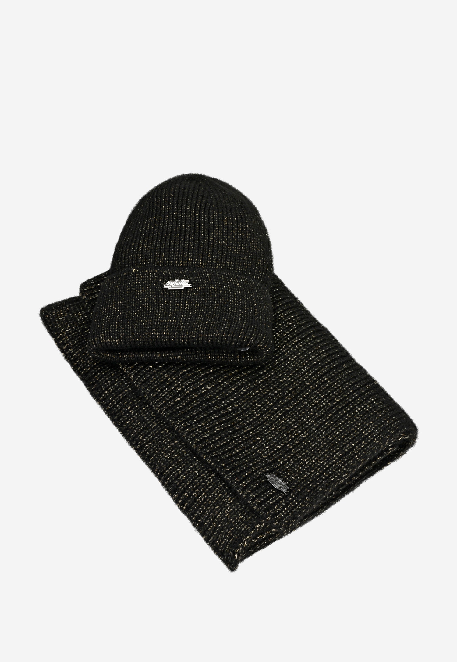 Czarny zimowe komplet RELAKS ze złotą nitką czapka i szalik R96038-81