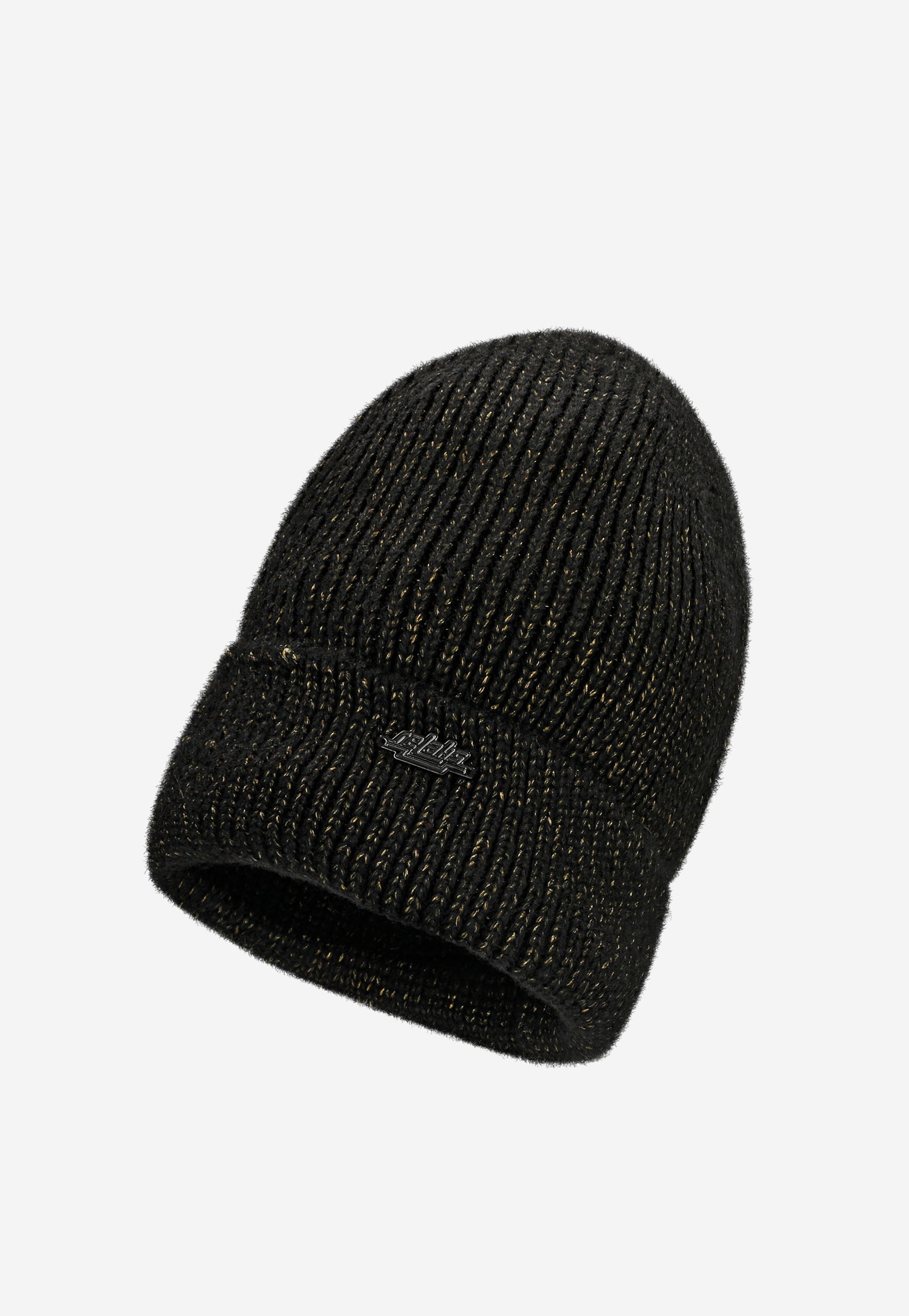 Czarny zimowe komplet RELAKS ze złotą nitką czapka i szalik R96038-81 Widok 1