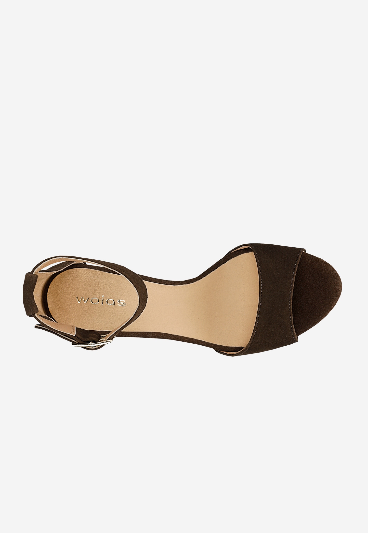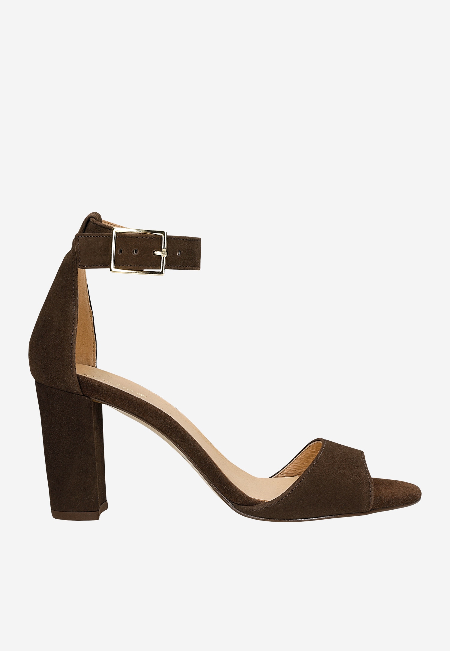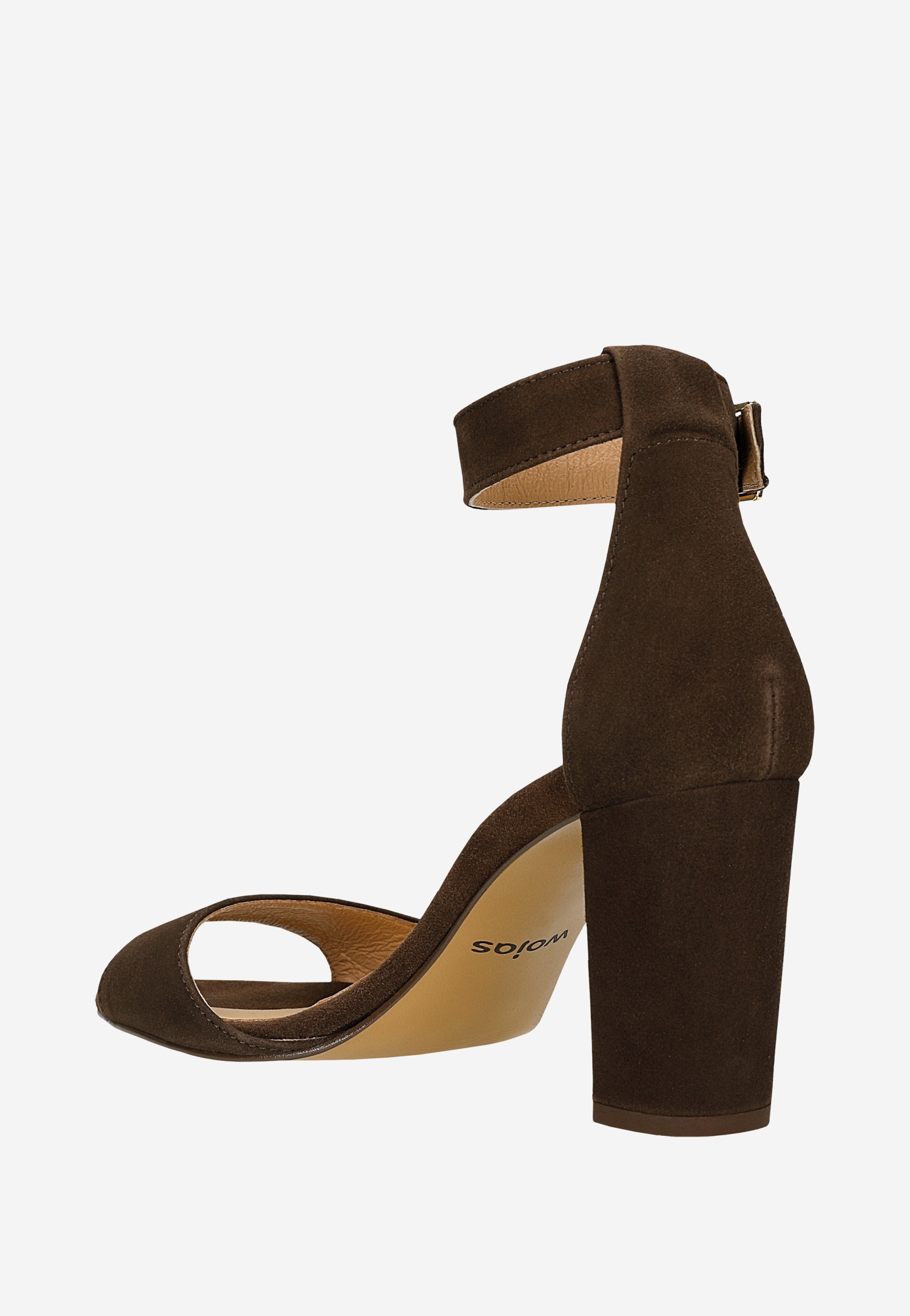 Te czekoladowe sandały na słupku to idealne połączenie kobiecego stylu z komfortem noszenia. Welurowa skóra w ciepłym brązowym odcieniu nadaje im wyjątkowego charakteru, który doskonale komponuje się z formalnymi i półformalnymi stylizacjami. Stabilny 8-centymetrowy słupek zapewnia pewność kroku, nie rezygnując z eleganckiej sylwetki.