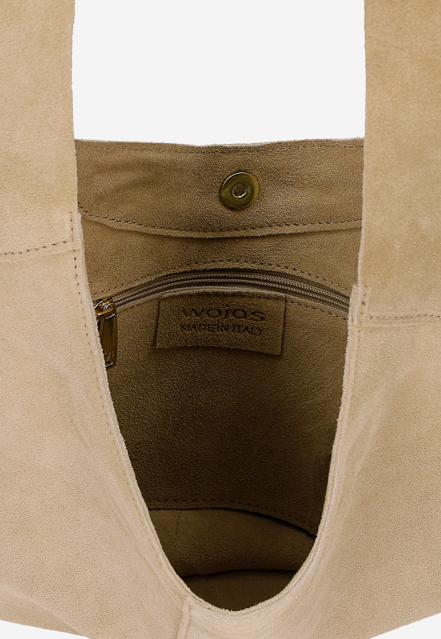Ta beżowa torebka shopper marki Wojas to połączenie funkcjonalności z ponadczasowym stylem. Wykonana z miękkiej dwoiny welurowej, dodatek zachwyca przyjemną w dotyku fakturą i trwałością. Jej imponujące wymiary 48 x 30 cm sprawiają, że bez problemu zmieścisz w niej wszystko, co potrzebne na co dzień – od laptopa przez dokumenty, aż po niezbędne drobiazgi.