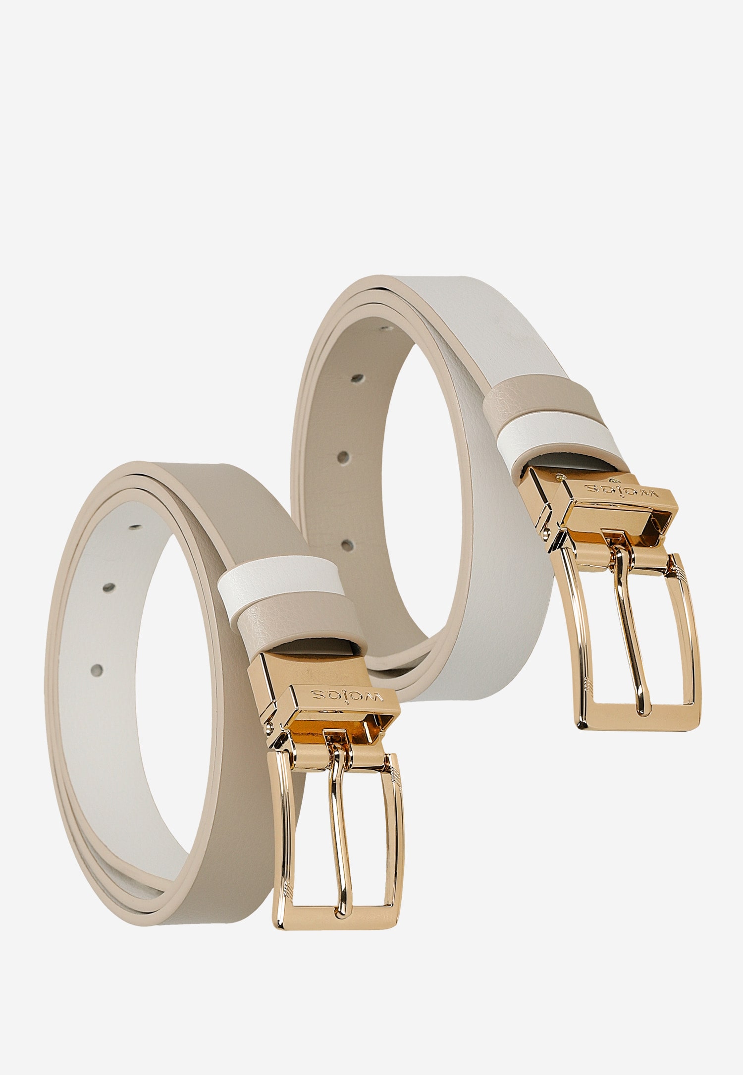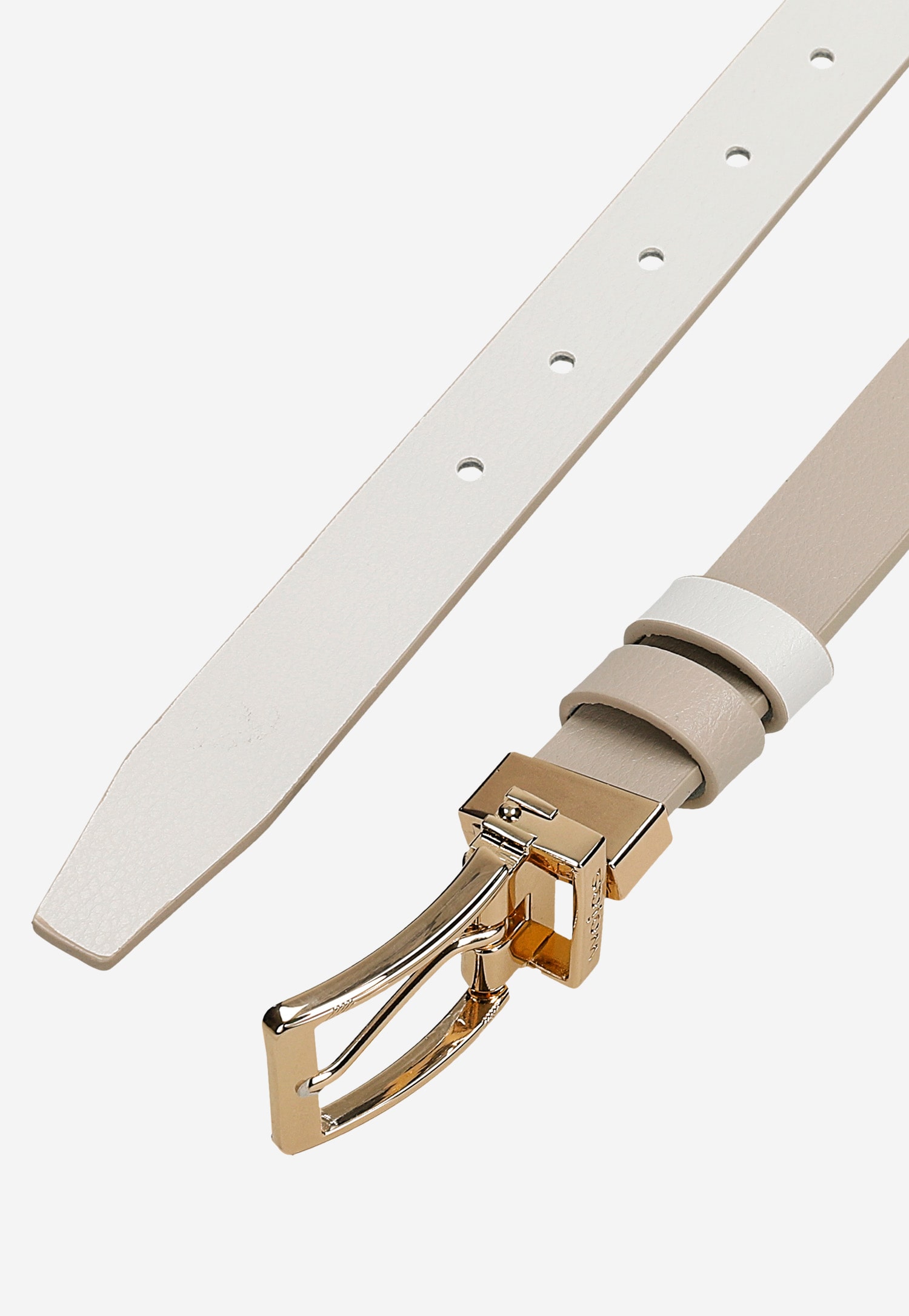Ten elegancki pasek damski ze skóry licowej to prawdziwe must-have w każdej garderobie. Dwustronna konstrukcja w kolorach biało-beżowych oferuje Ci niezwykłą wszechstronność – jednym ruchem zmienisz wygląd swojej stylizacji, dostosowując pasek do koloru ubrania czy okazji. Masz więc dwa paski w jednym, co czyni go nieocenionym dodatkiem zarówno do casualowych jeansów, jak i eleganckich sukienek czy spódnic.