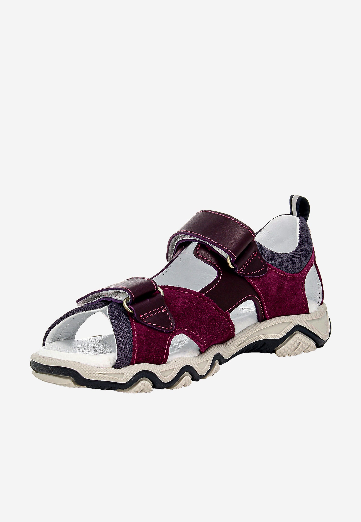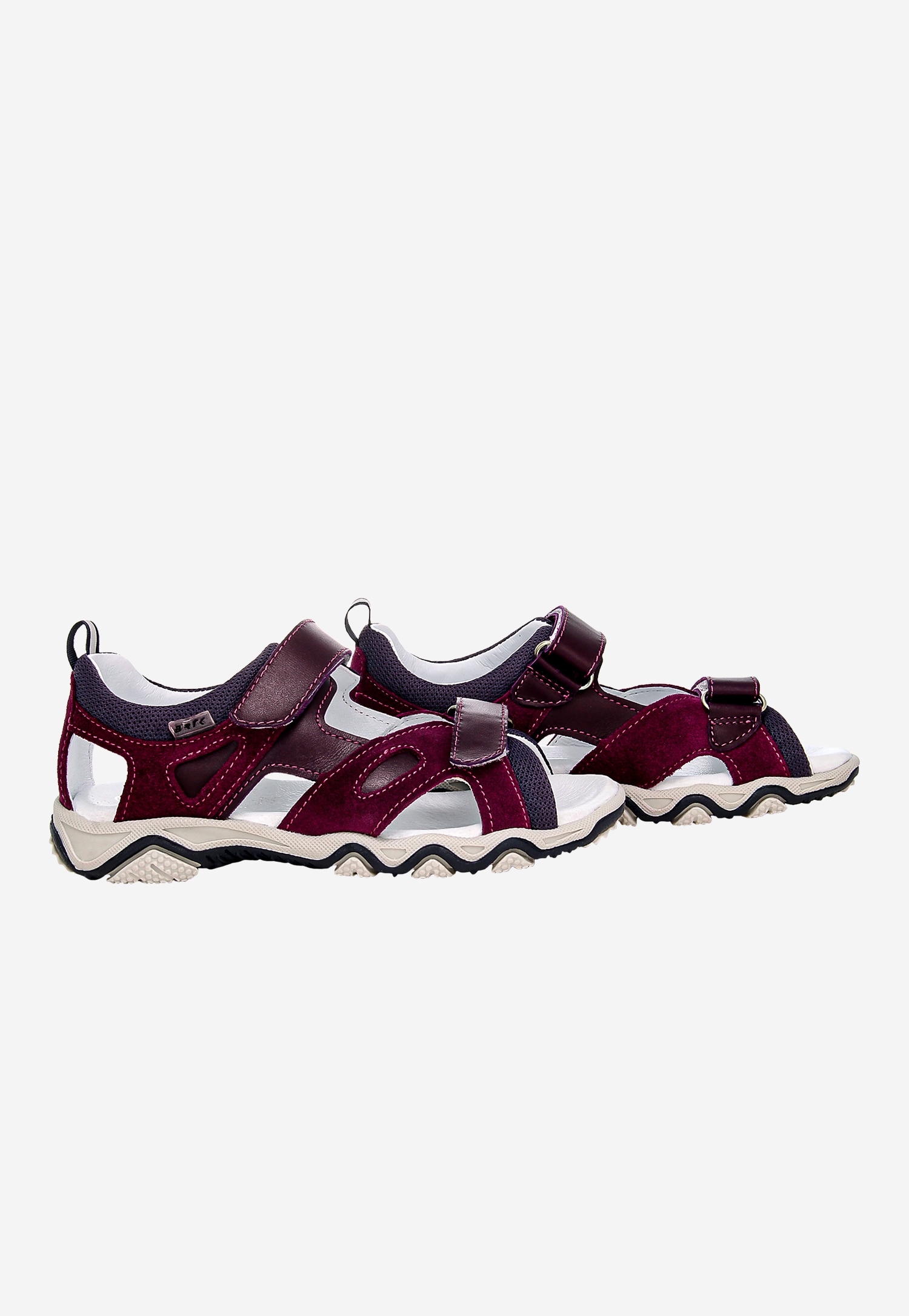 Te efektowne sandały dziecięce w odcieniu fioletowo-bordowym to doskonały wybór dla aktywnych dziewczynek, które cenią zarówno styl, jak i wygodę. Model wykonano z połączenia dwóch rodzajów skóry – welurowej i licowej, co nadaje obuwiu oryginalnego charakteru i zapewnia trwałość przez cały sezon.