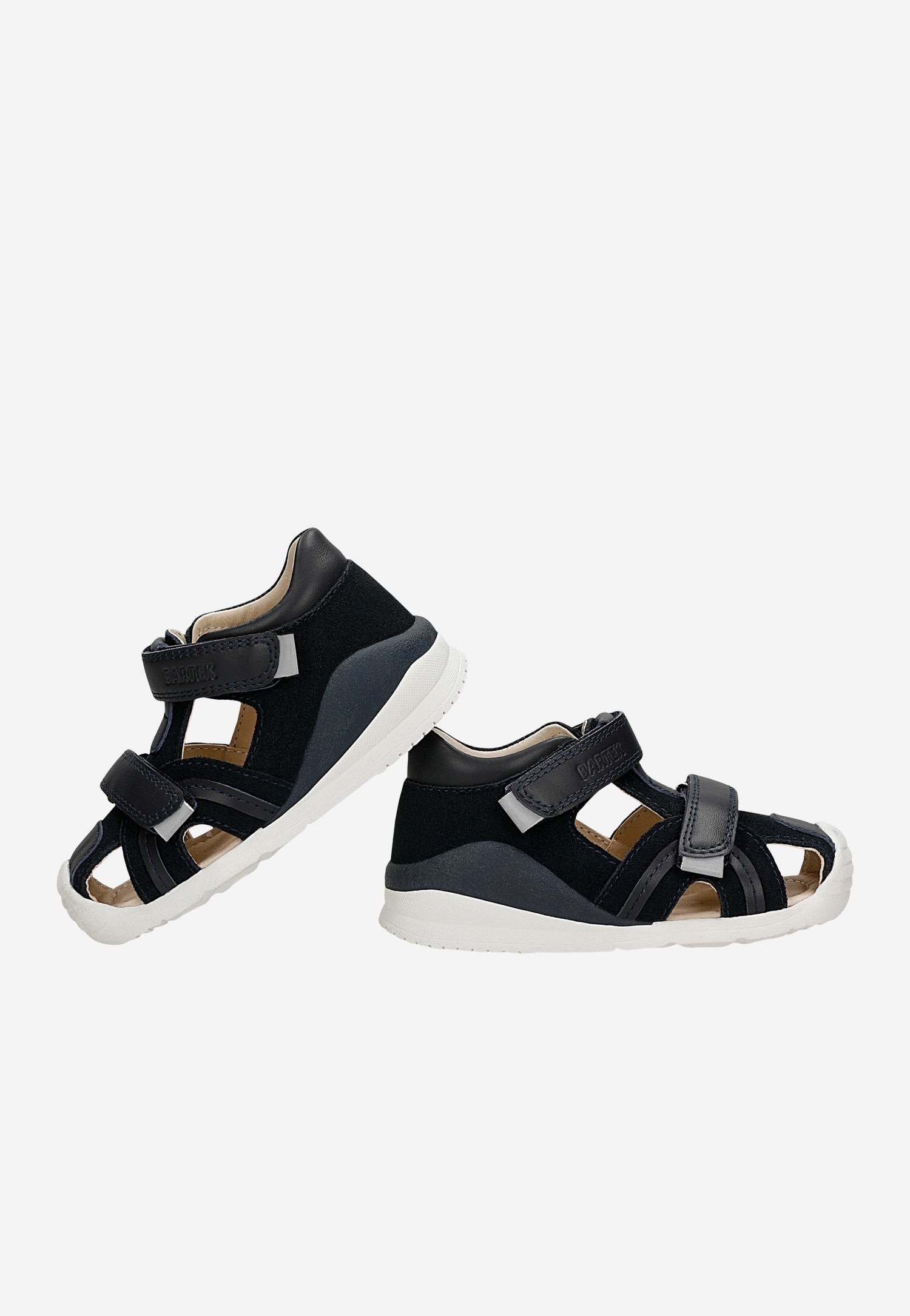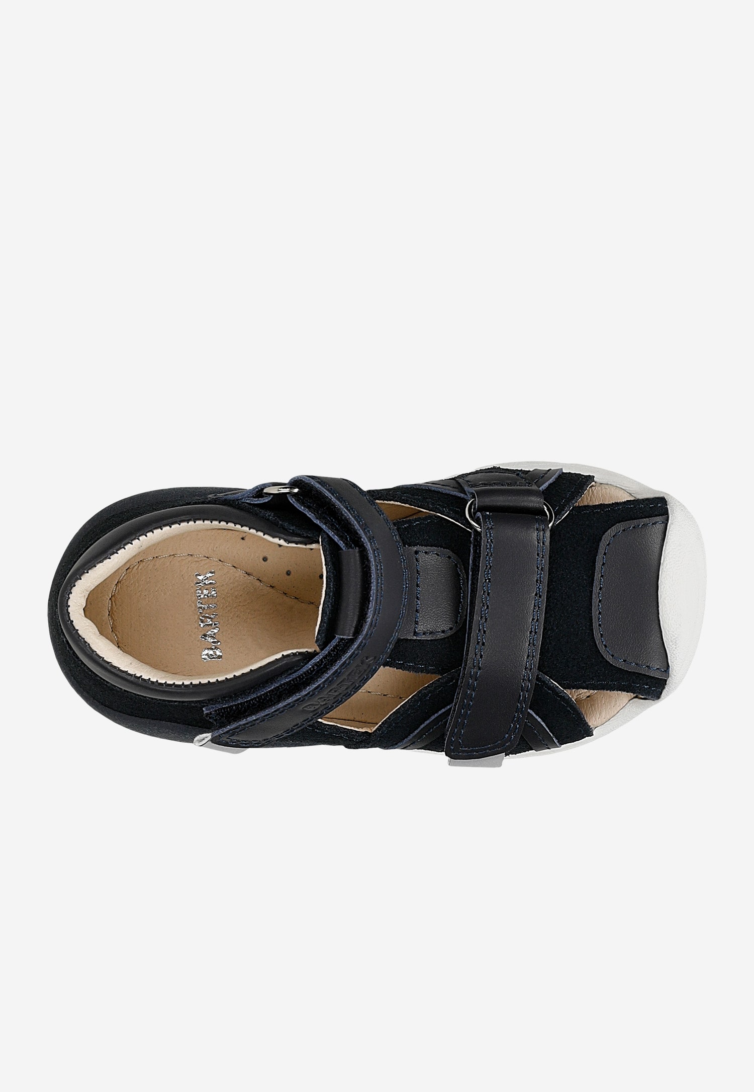 Letnie sandały BARTEK 84418-76 w klasycznym granatowym kolorze łączą najwyższą jakość wykonania z przemyślanym designem. Dziecięce stopy zasługują na profesjonalną ochronę, dlatego ten model powstał z połączenia miękkiej skóry welurowej i wytrzymałej skóry licowej, zapewniając optymalną wentylację w ciepłe dni.