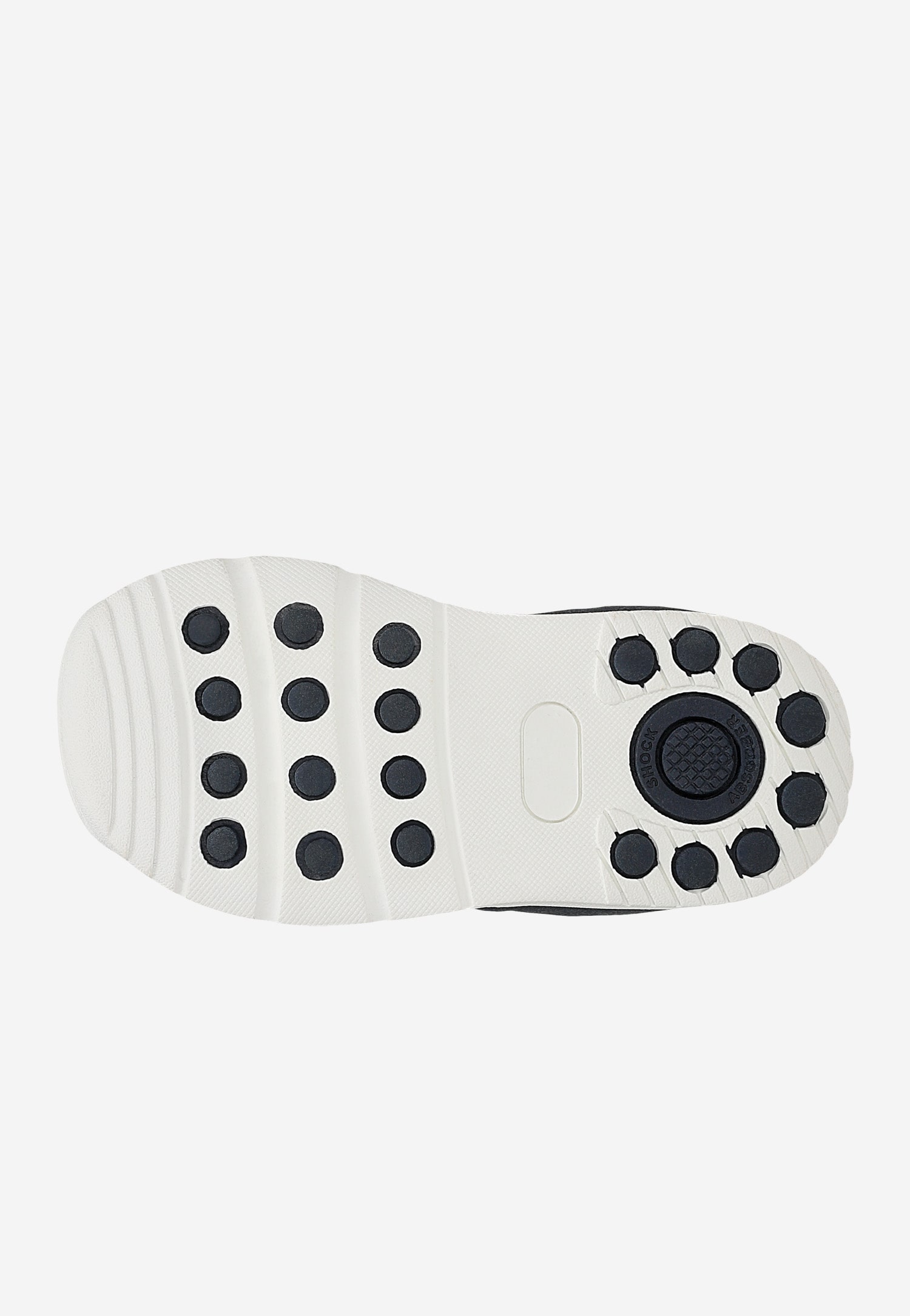 Praktyczne zapięcie na rzepy pozwala na szybkie zakładanie i zdejmowanie butów, a także idealne dopasowanie do różnej szerokości stopy. Podszewka ze skóry świńskiej skutecznie odprowadza wilgoć, zapobiegając podrażnieniom. Płaska podeszwa o wysokości zaledwie 1,2 cm wspiera prawidłowy rozwój stopy, podczas gdy niski obcas (1,5 cm) stabilizuje krok.