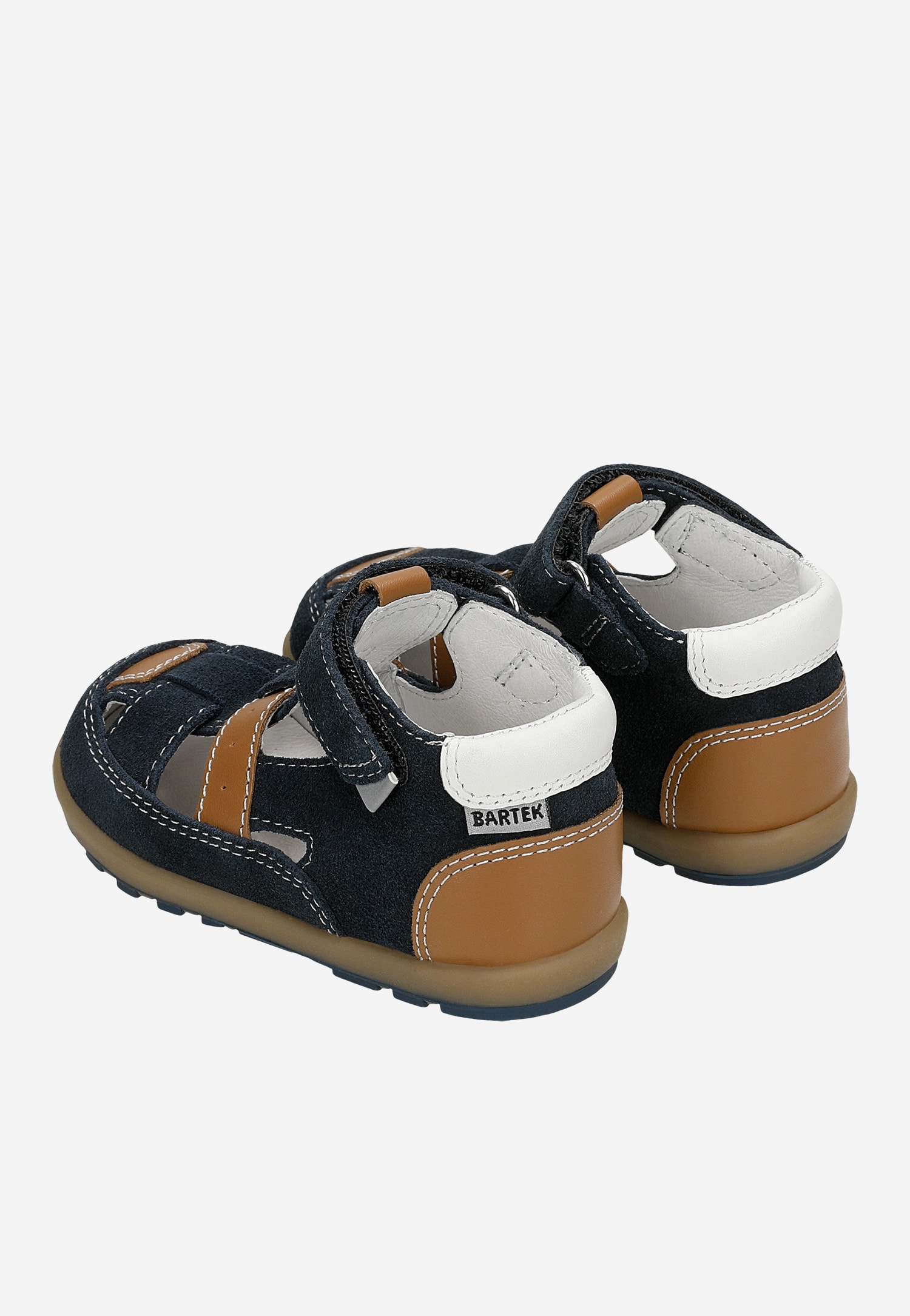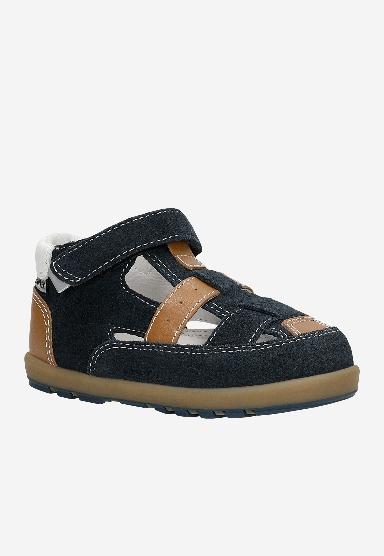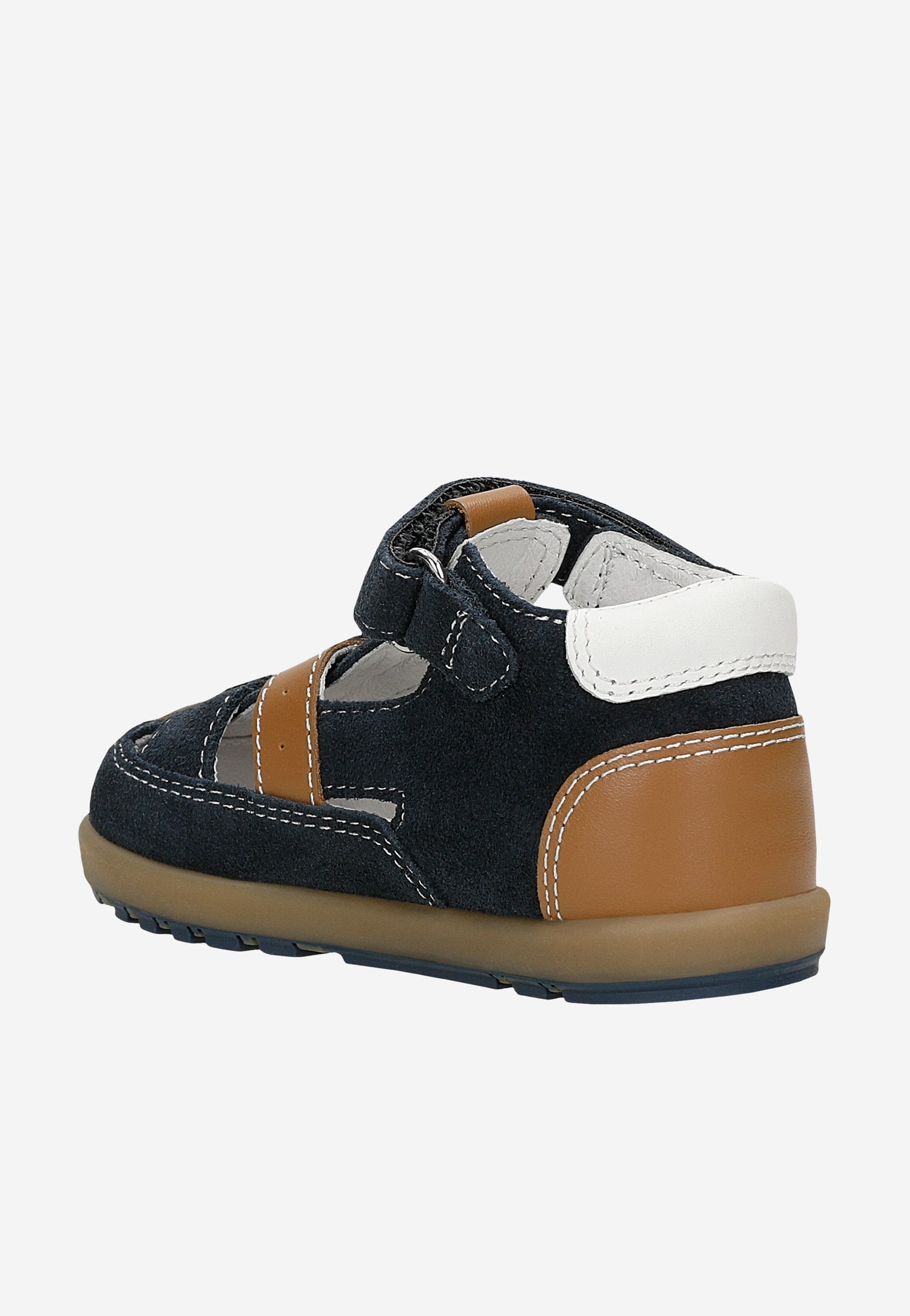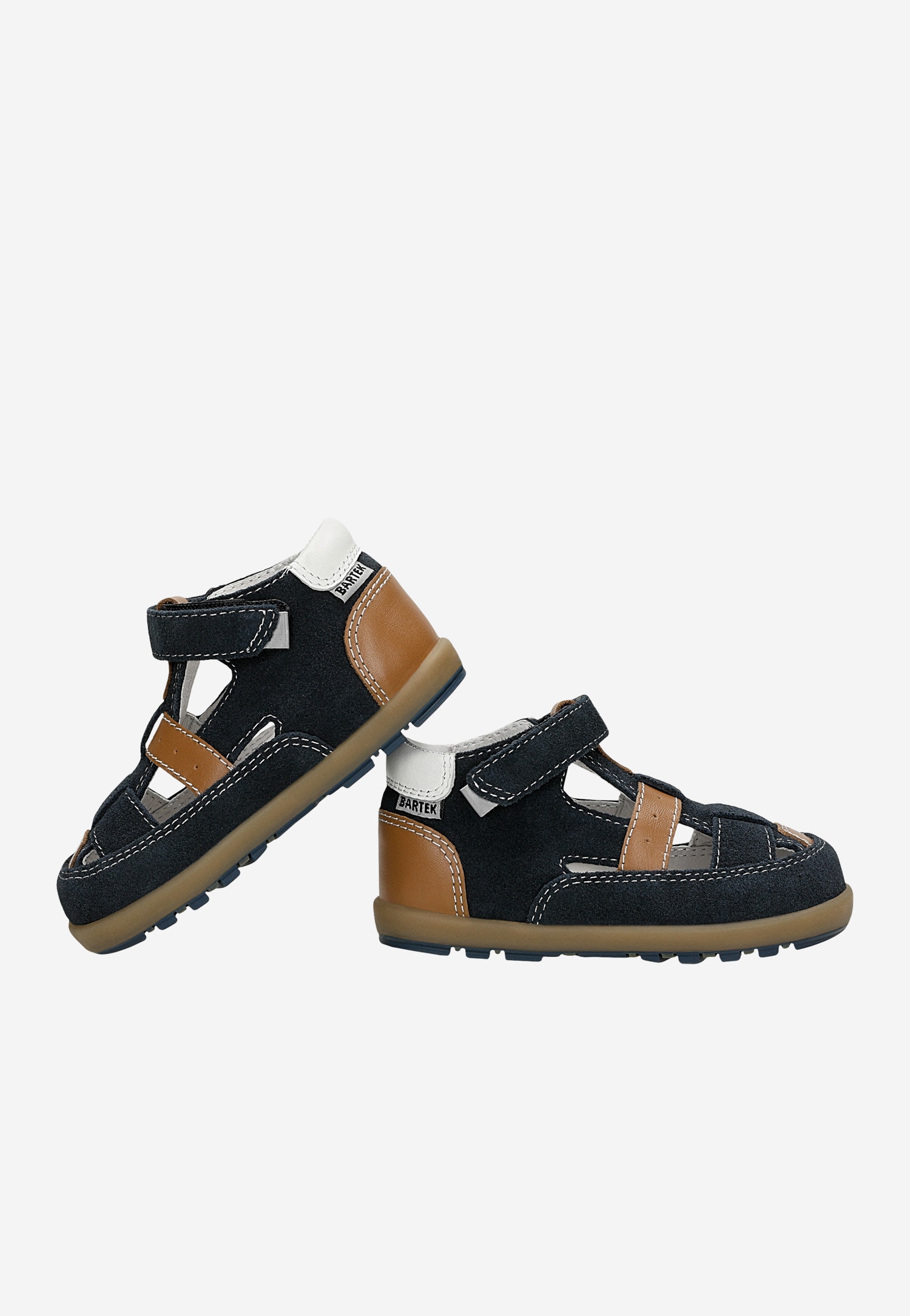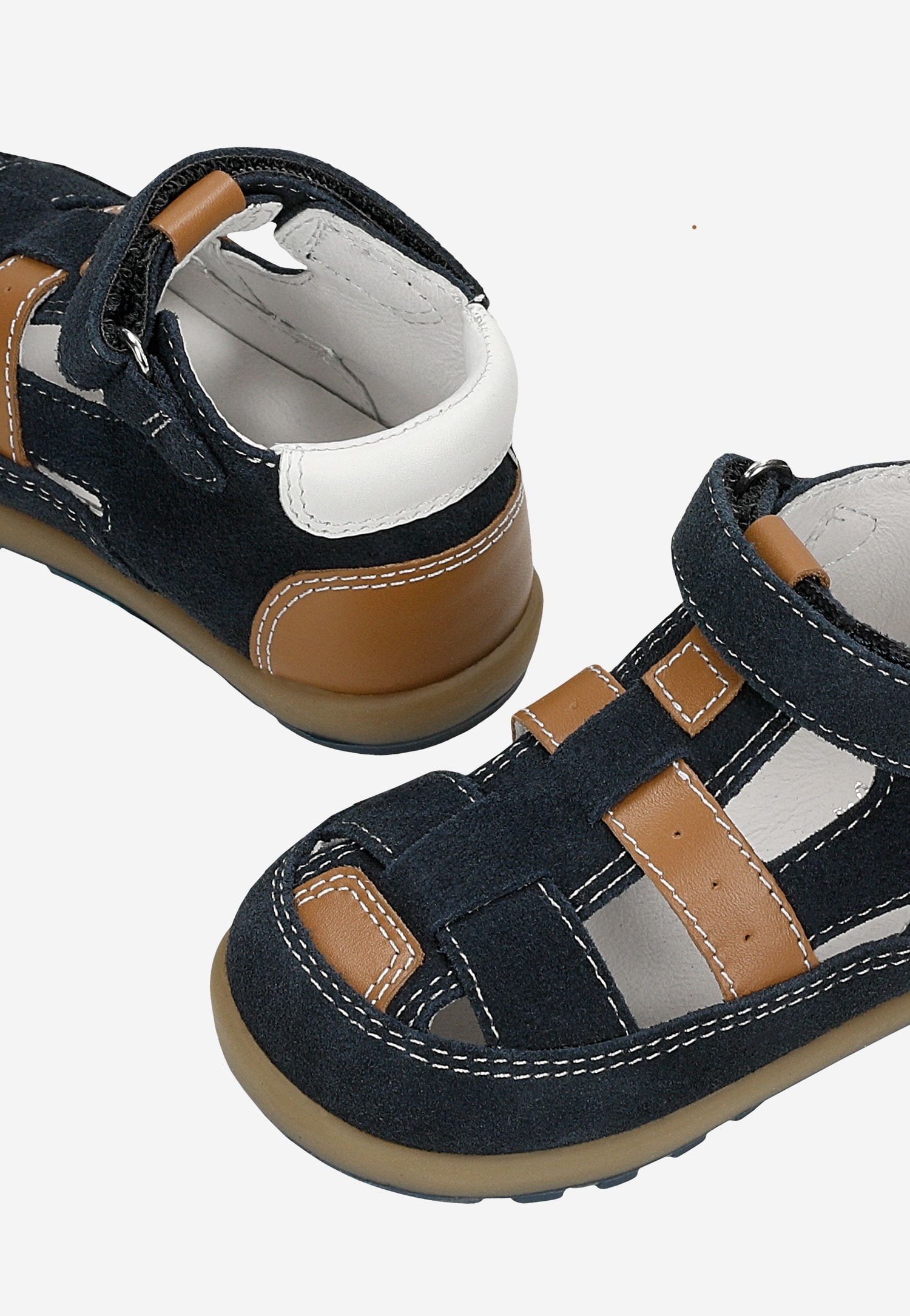 Te letnie półsandały to idealne obuwie dla Twojego syna na ciepłe dni. Model wykonano w całości ze skóry naturalnej – gładka skóra licowa łączy się z eleganckim welurowym wykończeniem, tworząc wytrzymałą i estetyczną całość. Klasyczne zestawienie granatu z brązem sprawia, że sandały pasują zarówno do jeansów, jak i letnich szortów.