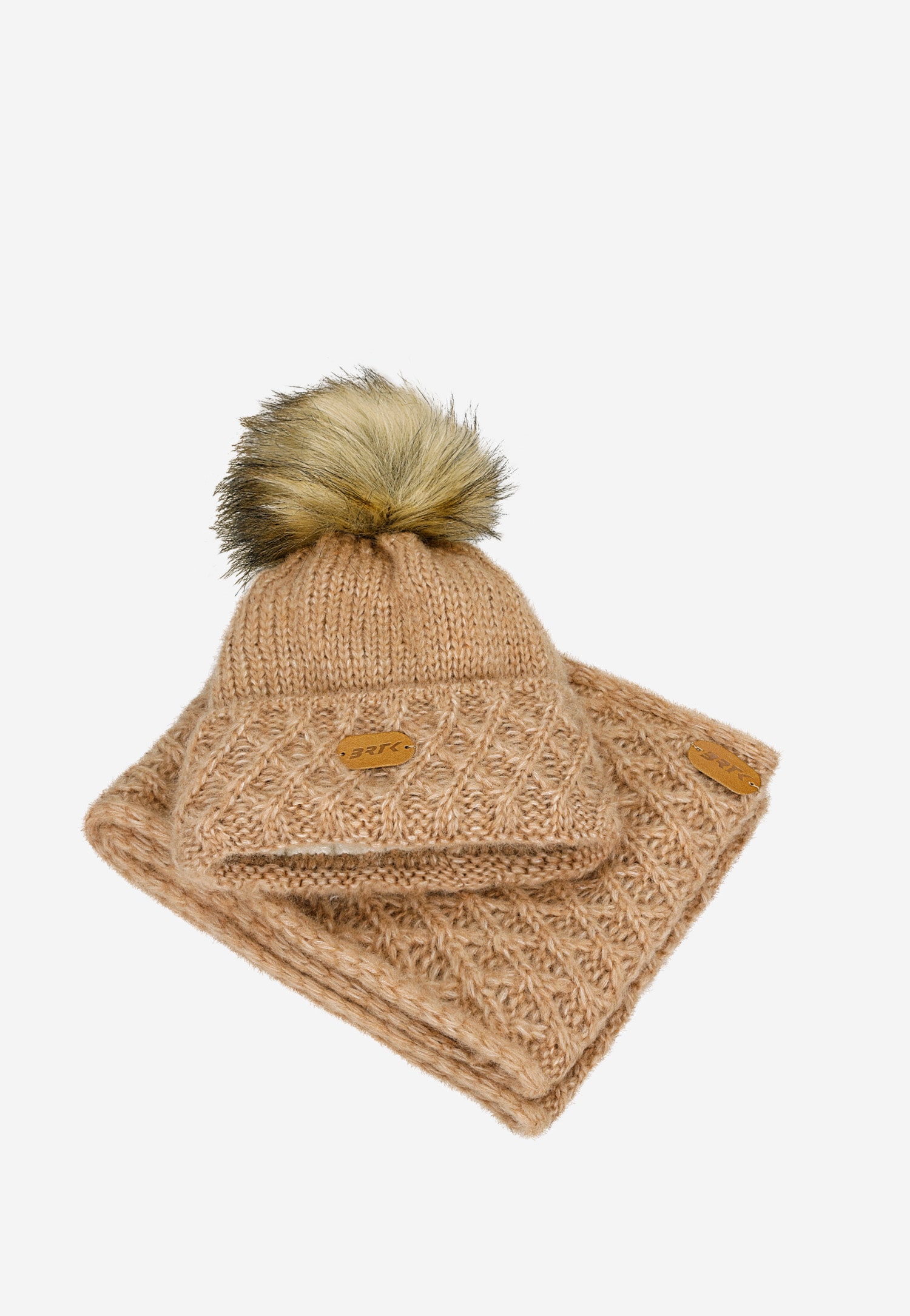 Jasnobrązowy zestaw BARTEK 85602-83 z wełną merino - czapka + komin Widok 1