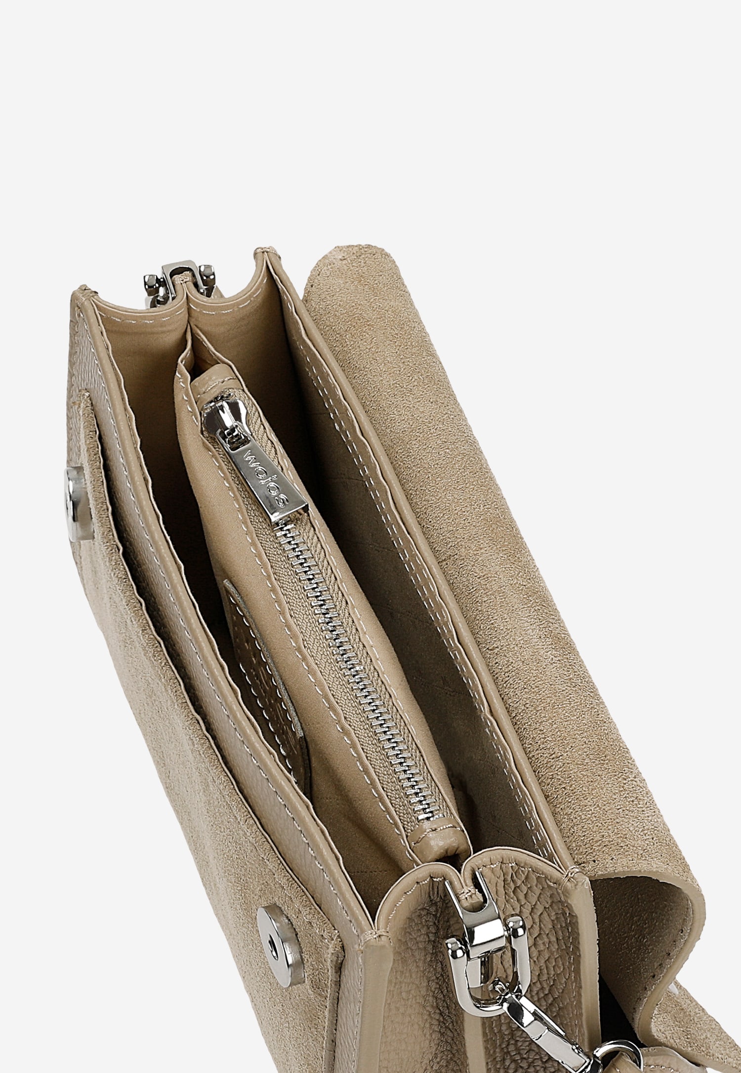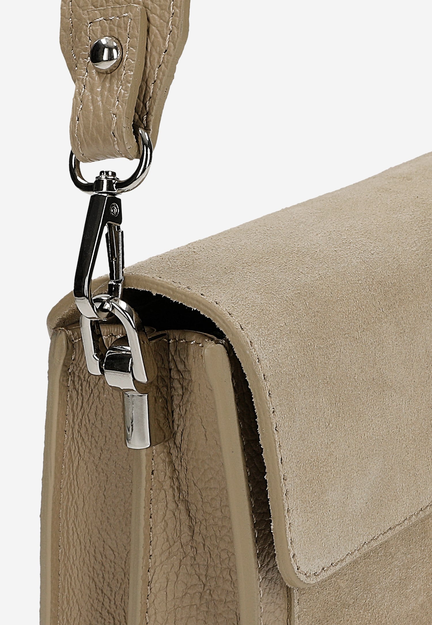 Ta niewielka beżowa torebka łączy w sobie ponadczasową elegancję z codzienną funkcjonalnością. Wykonana z połączenia skóry licowej i dwoiny welurowej, wyróżnia się delikatną fakturą i szlachetnym wykończeniem. Uniwersalny beżowy kolor sprawia, że torebka idealnie komponuje się zarówno z casualowymi, jak i bardziej eleganckimi stylizacjami.