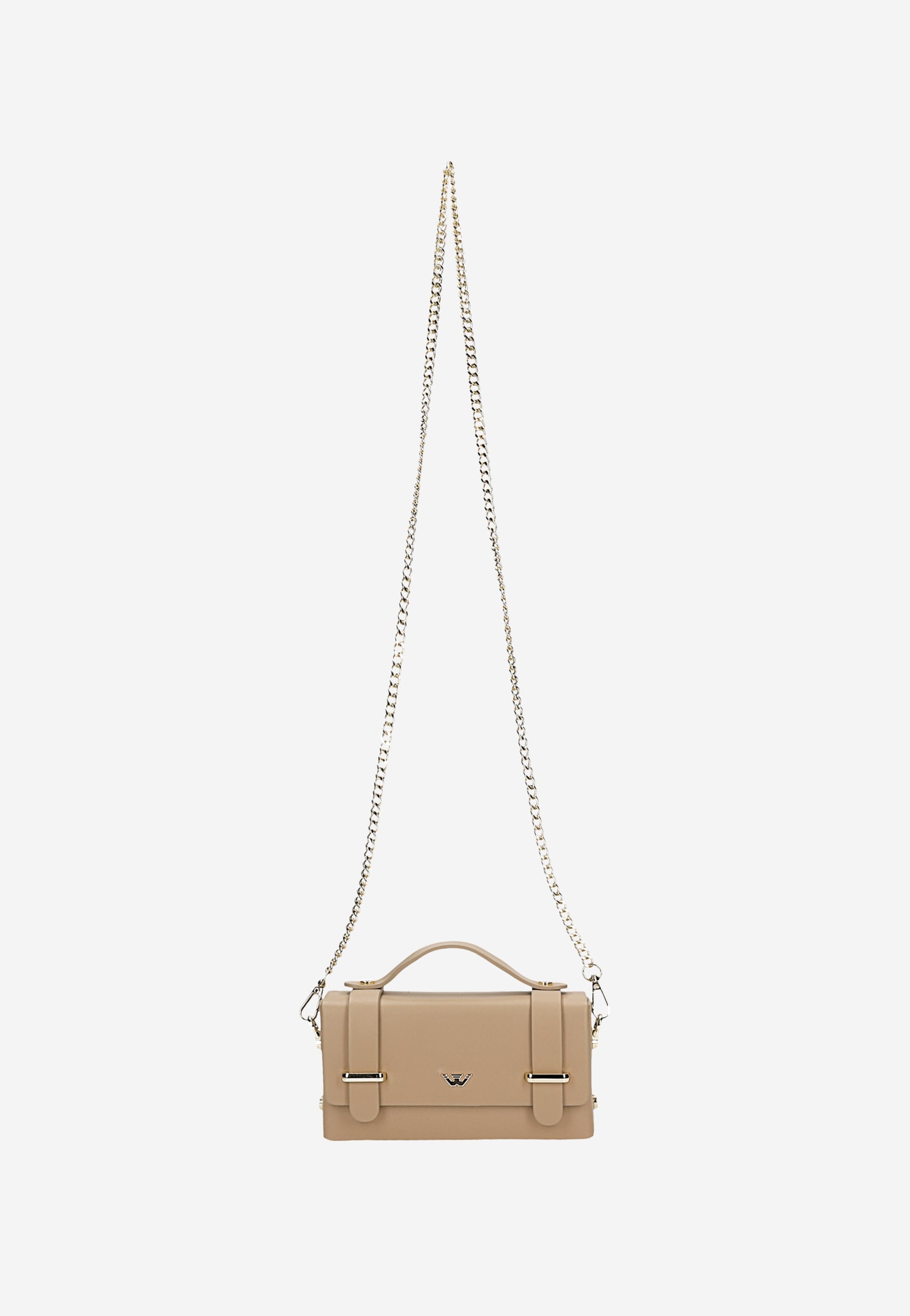 Ta niewielka beżowa torebka ze skóry licowej to idealne rozwiązanie dla kobiet ceniących minimalizm i wygodę. Jej kompaktowe wymiary (18 x 9 x 4 cm) pozwalają zabrać najważniejsze rzeczy – portfel, telefon, klucze – bez zbędnego obciążenia. Uniwersalny beżowy kolor sprawia, że torebka perfekcyjnie komponuje się zarówno z eleganckimi stylizacjami biurowymi, jak i casualowymi weekendowymi lookami.