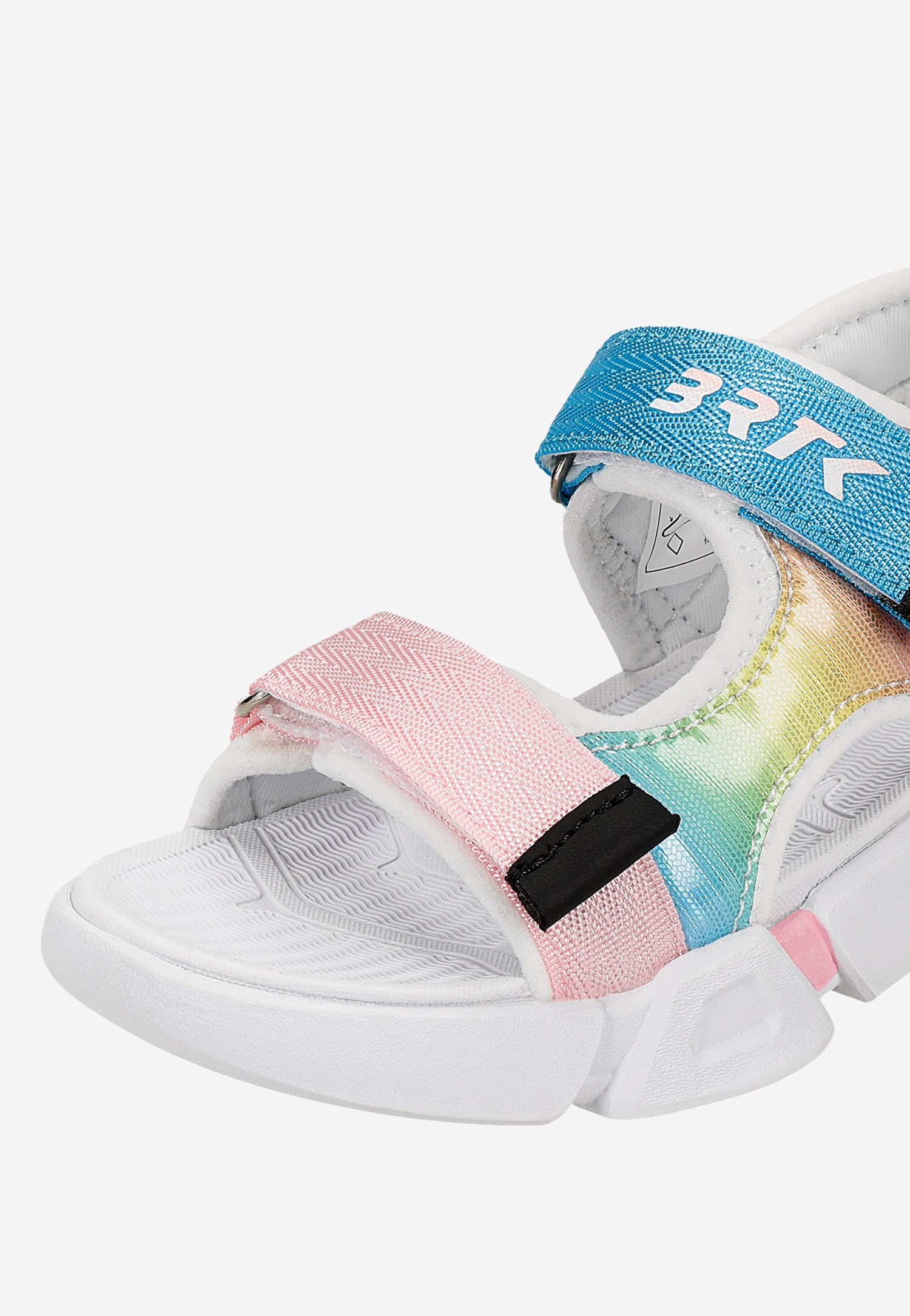 Kolorystyka sandałów przypadnie do gustu małym fashionistkom, które lubią wyróżniać się z tłumu. Model świetnie komponuje się z letnimi sukienkami, szortami czy spódniczkami, dodając każdej stylizacji radosnego charakteru.