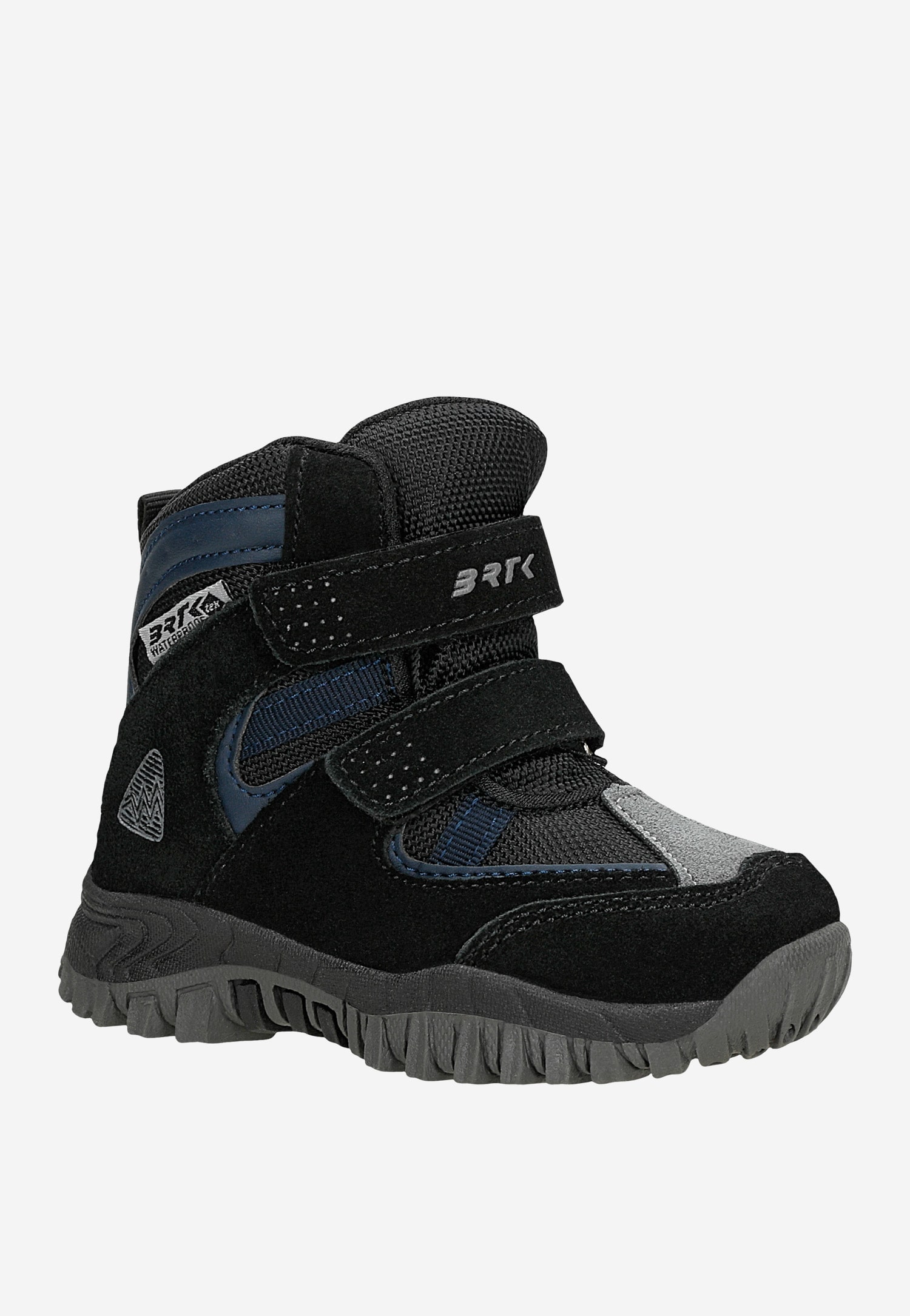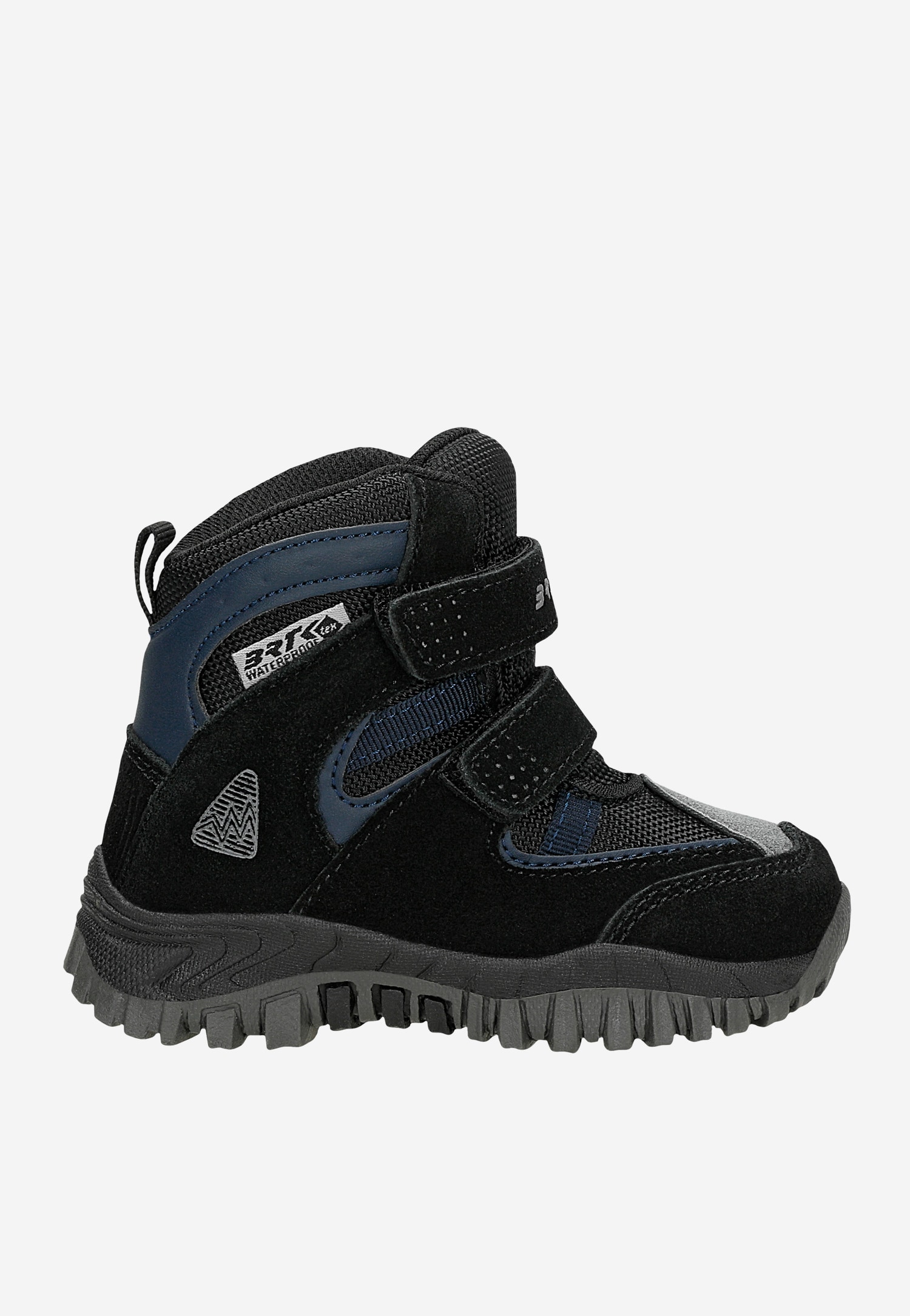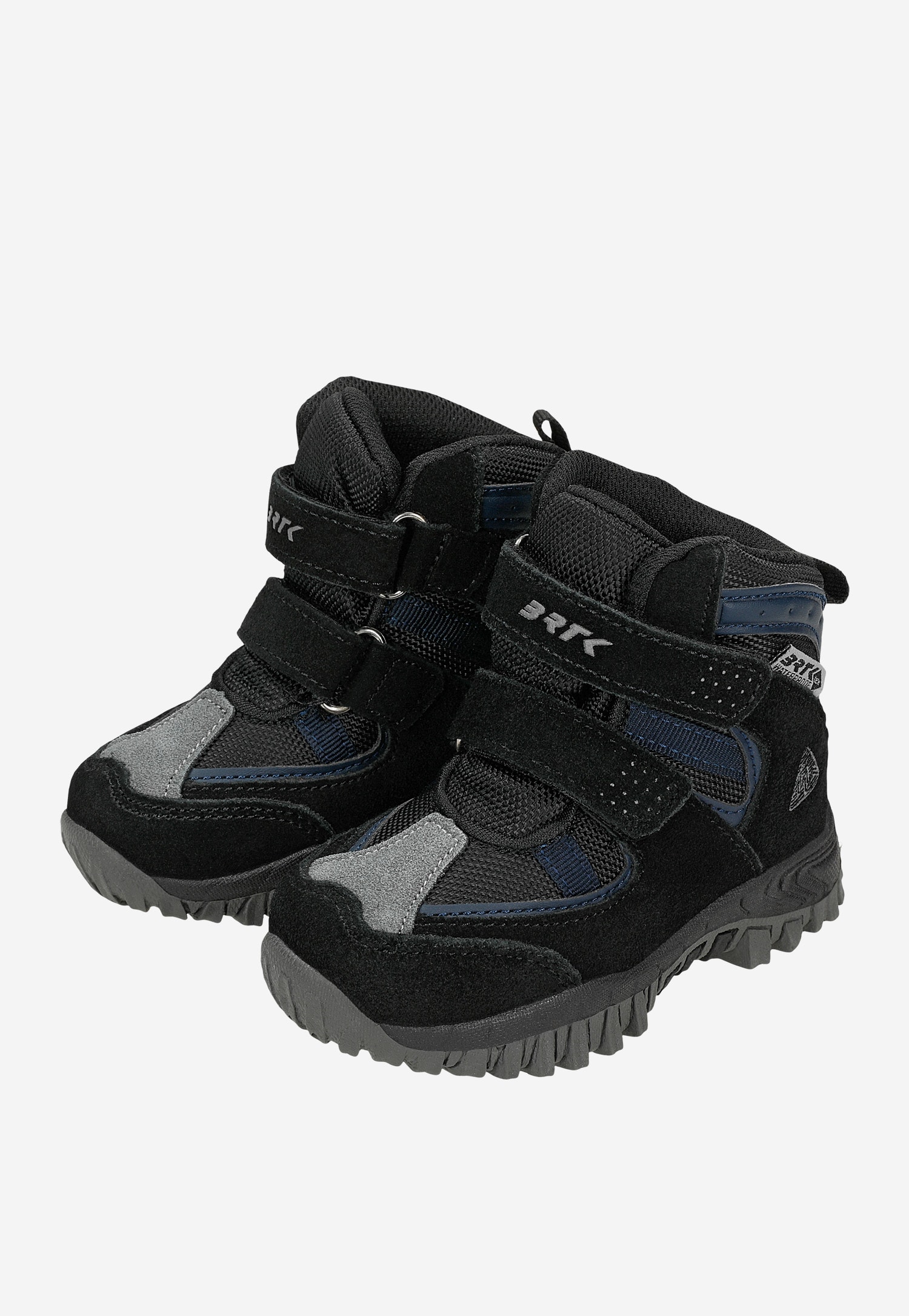 Trzewiki ocieplane BARTEK dla chłopców na sezon zimowy, w kolorze czarno-niebieskim. Obuwie przeznaczone dla najmłodszych klientów, małych wędrowników, odkrywców, szperaczy zaglądających w każdy zakątek, lubiących zabawy i spacery na świeżym powietrzu bez względu na pogodę. Idealnie sprawdzą się mroźną zimową porą.