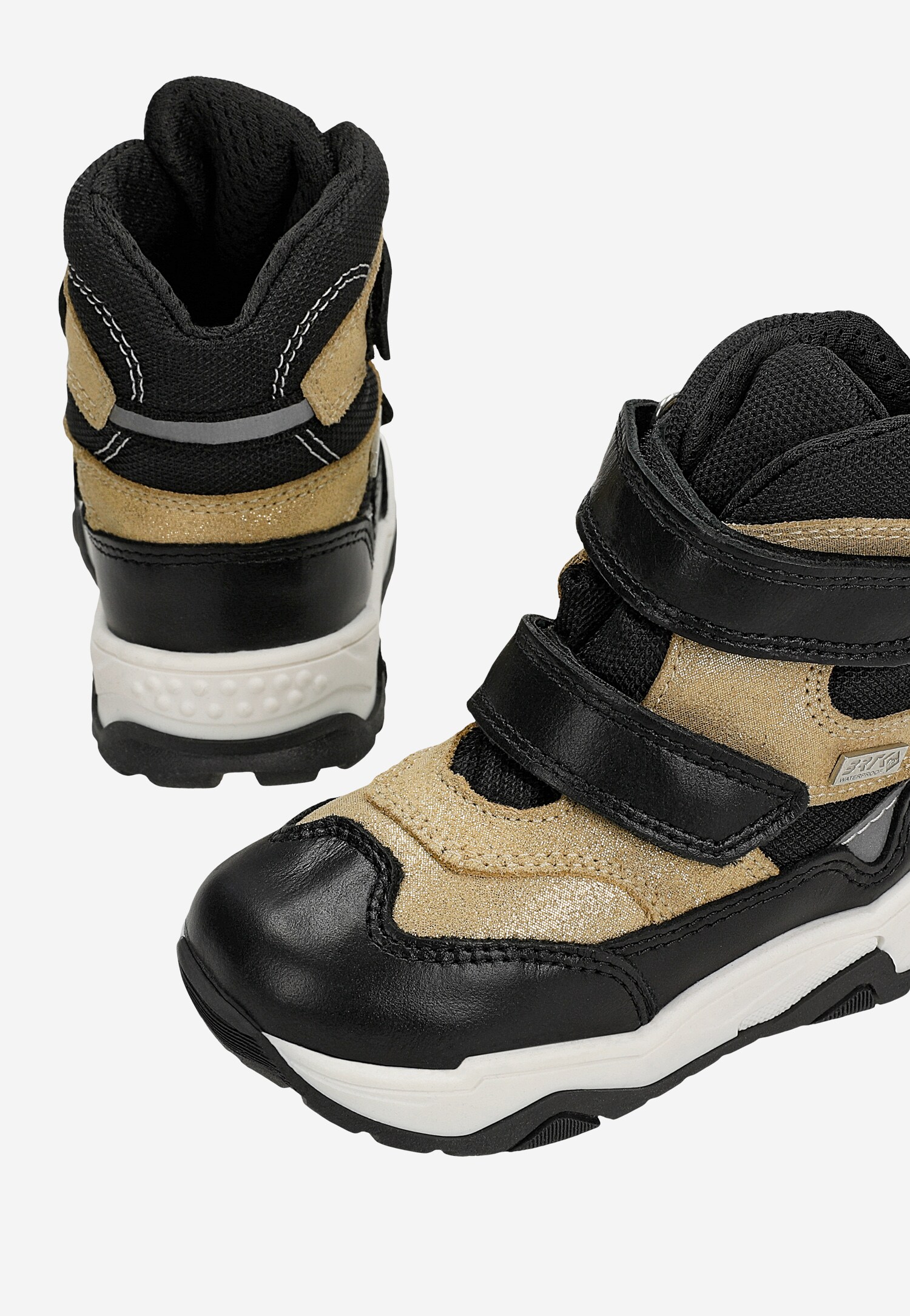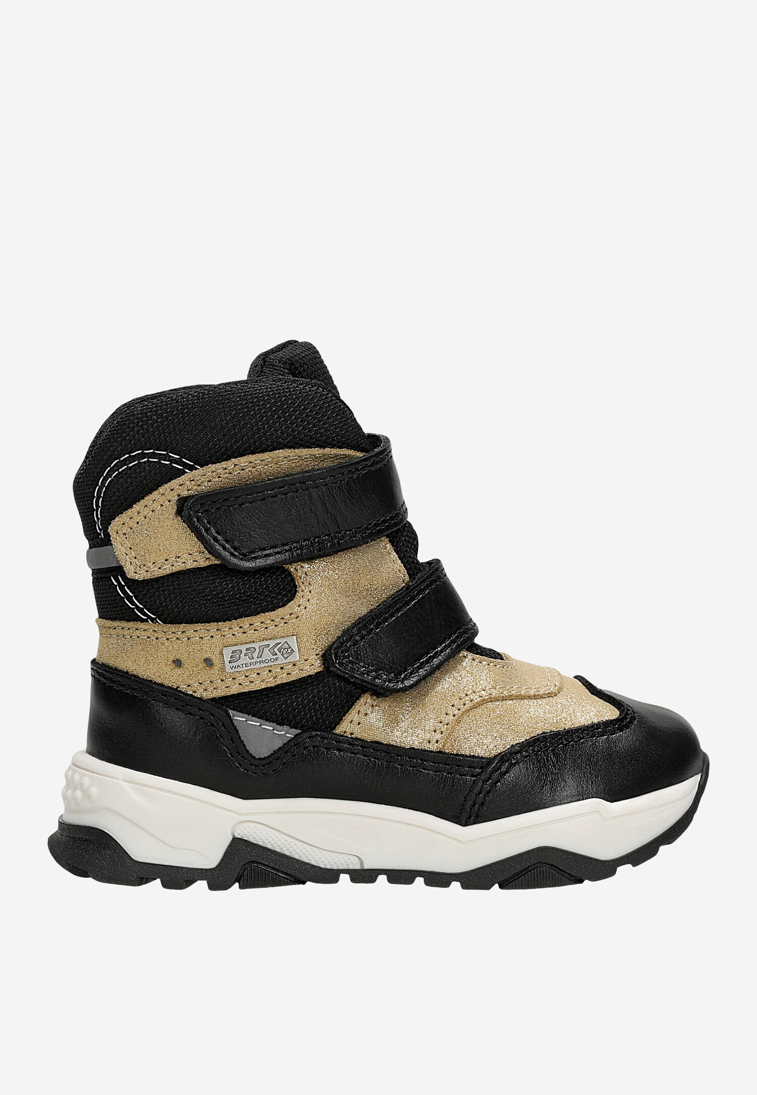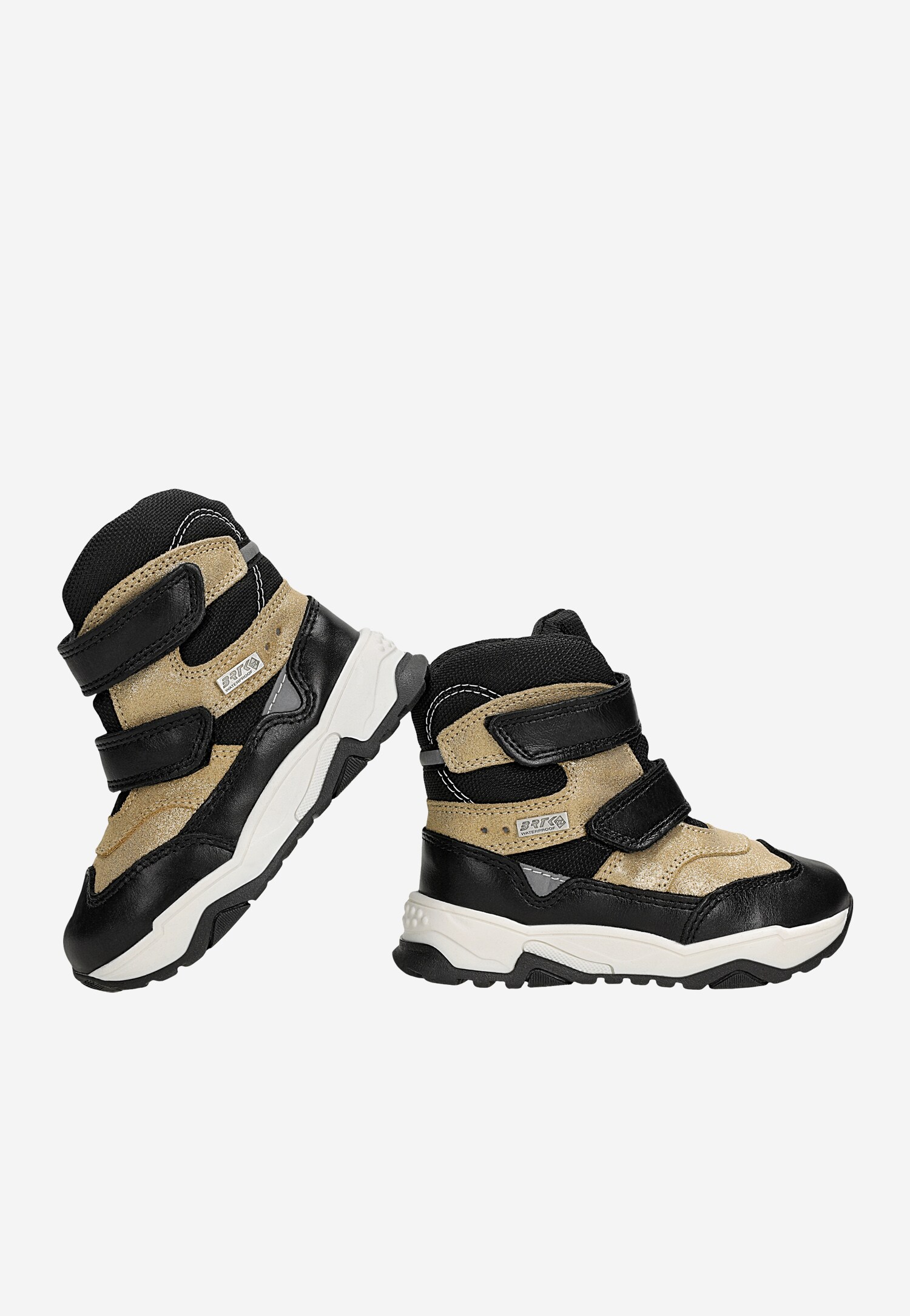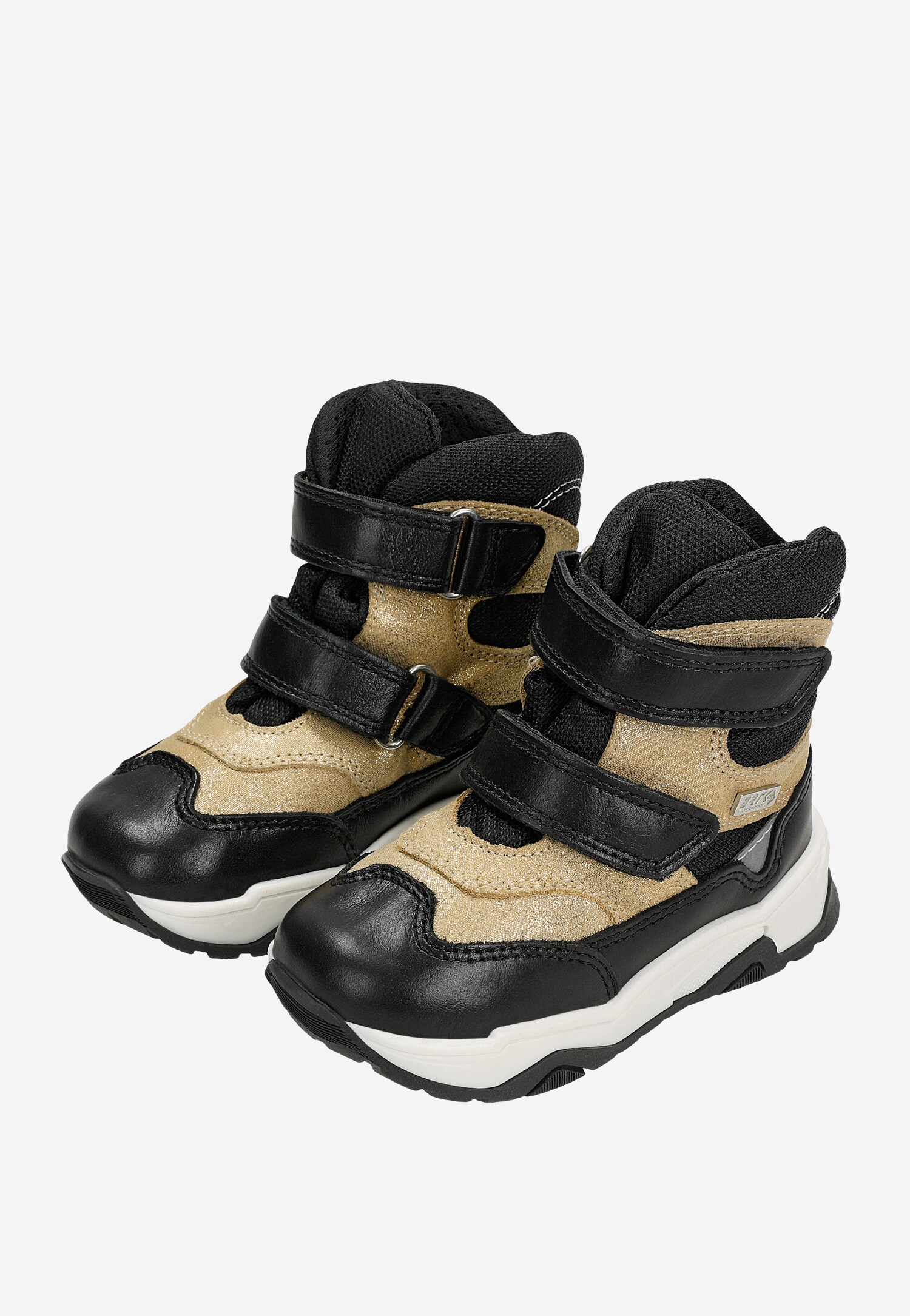 Trzewiki ocieplane BARTEK, dla najmłodszych klientek, w czarno-złotym kolorze.