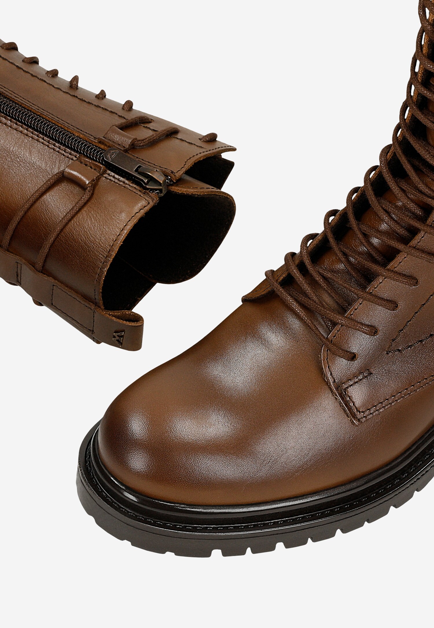 Wysokie brązowe bikery damkskie ze skóry licowej 64130-52 Widok 6