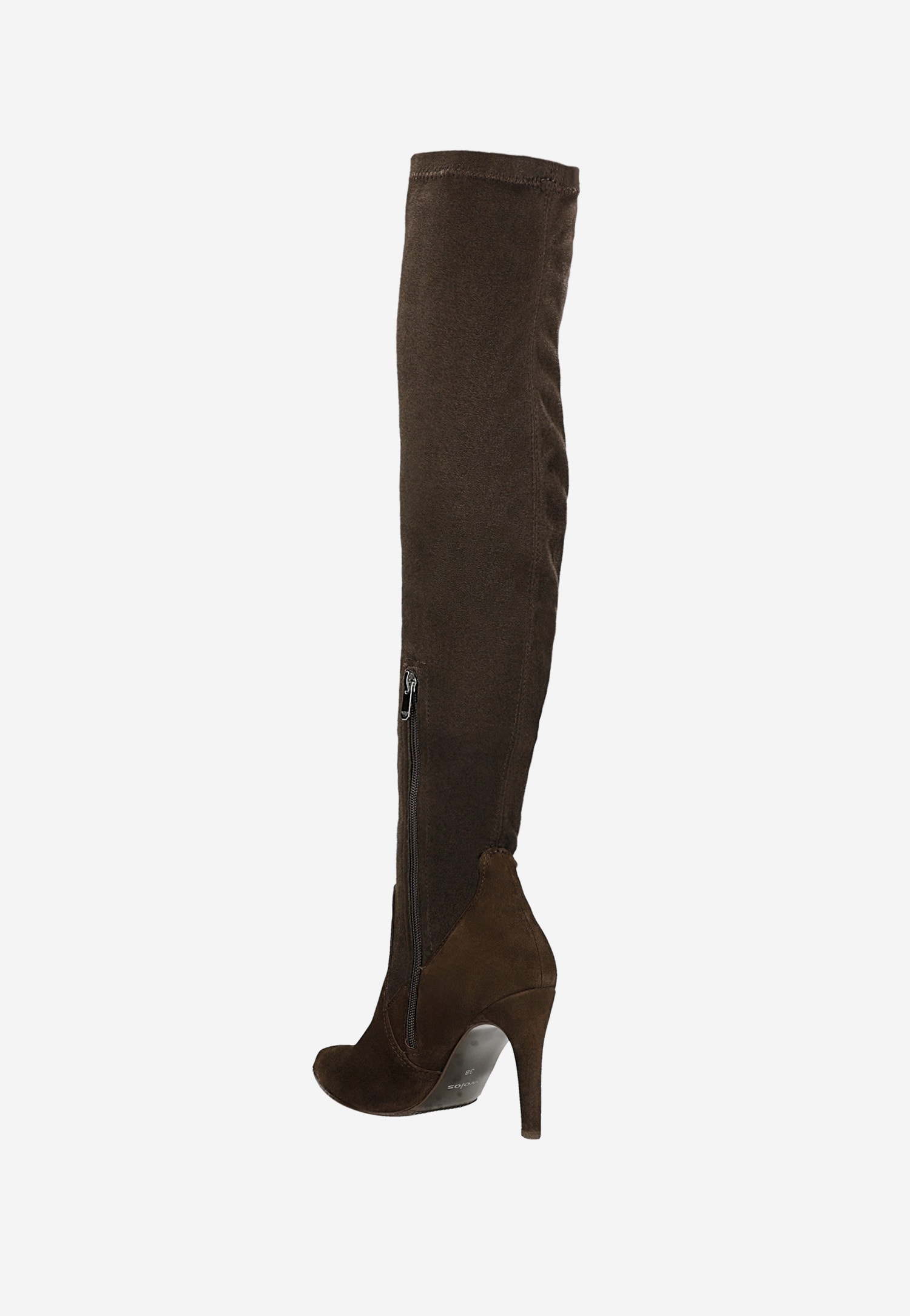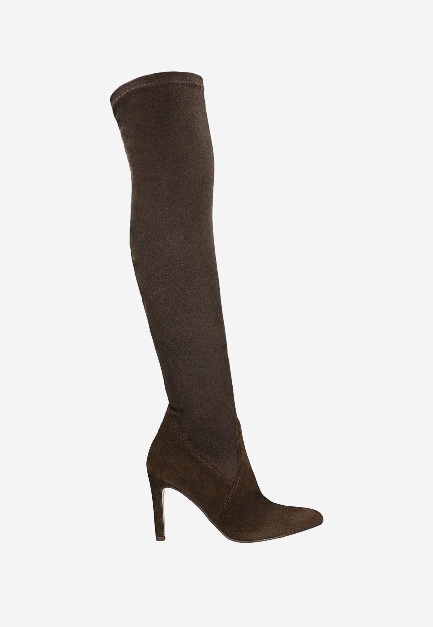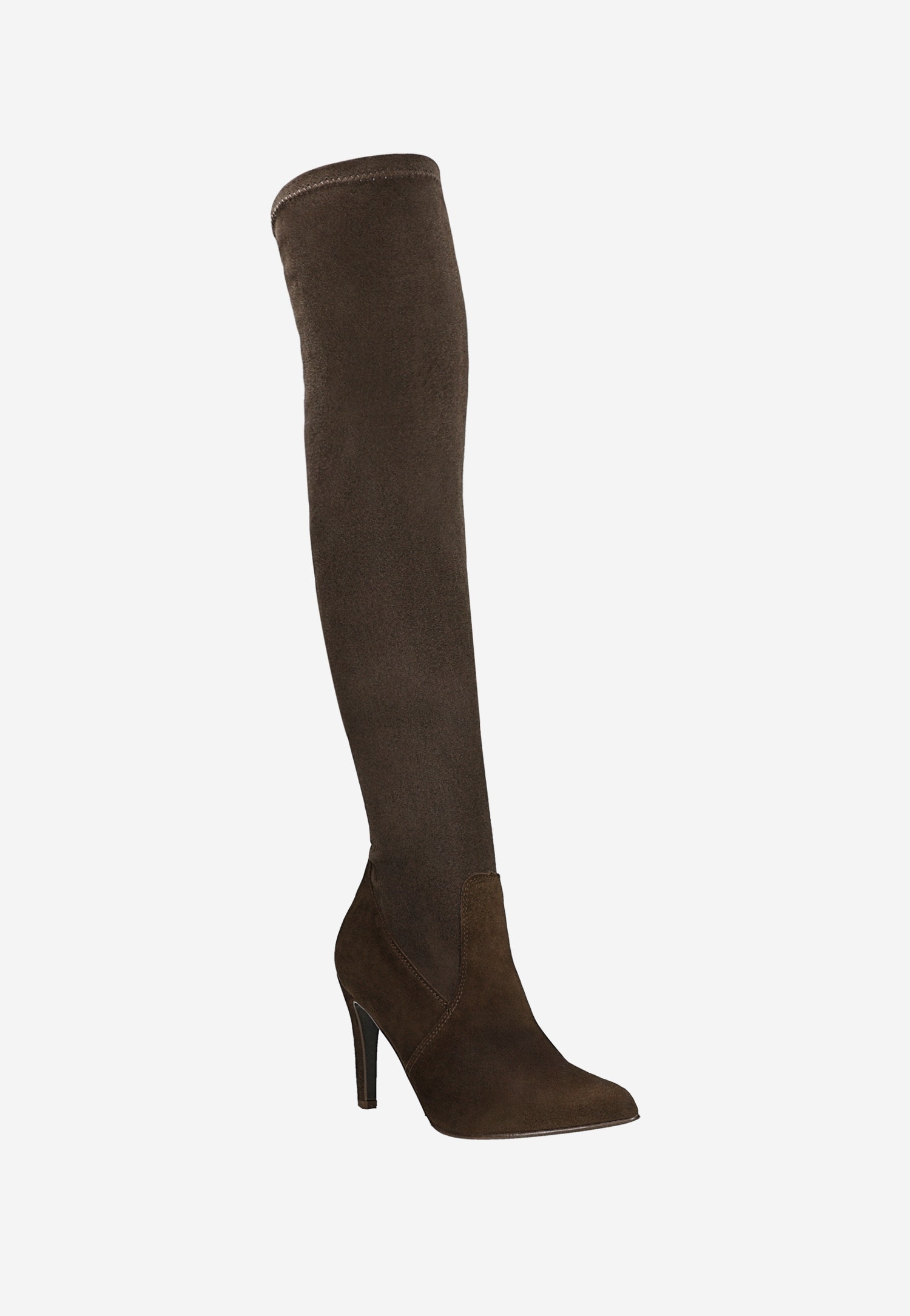 Wysokie czekoladowe kozaki za kolano na szpilce 71141-82