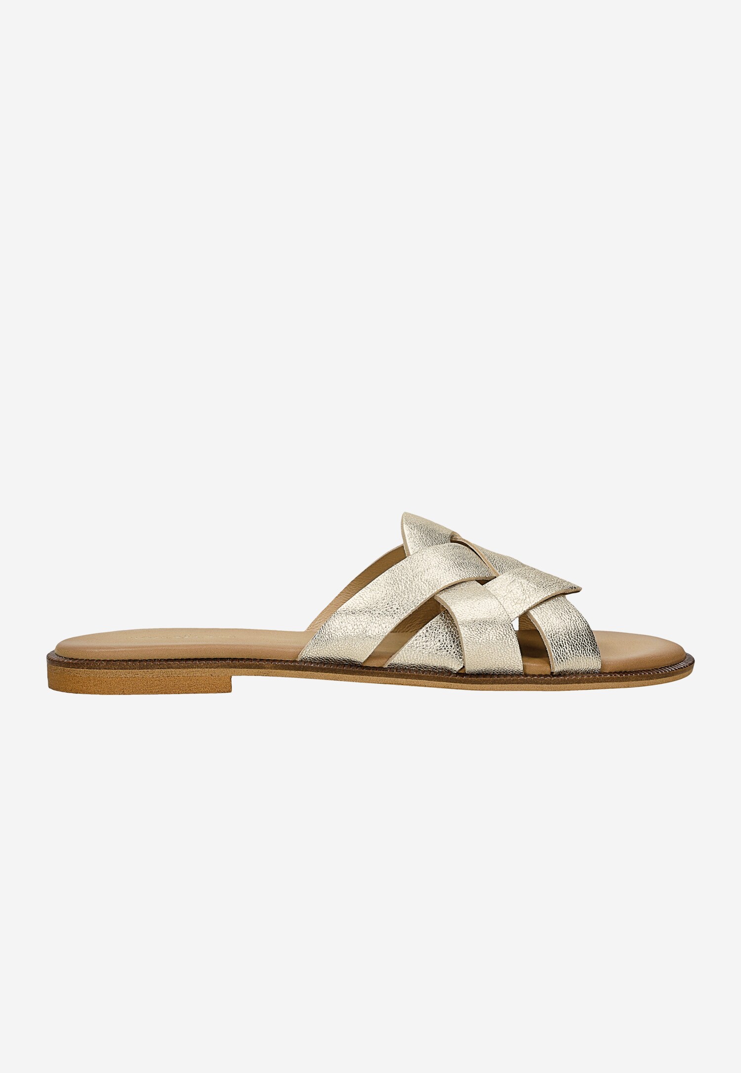 Te złote klapki z efektownie plecionymi paskami to must-have na słoneczne dni. Model 74176-58 marki Wojas łączy w sobie naturalną elegancję skóry licowej foliowanej z wygodą szerokiego, stabilnego obcasa. Połyskujący złoty kolor nadaje stylizacjom subtelnego blasku, idealnie komponując się z letnimi sukienkami, jeansami czy eleganckimi spodniami typu chino.